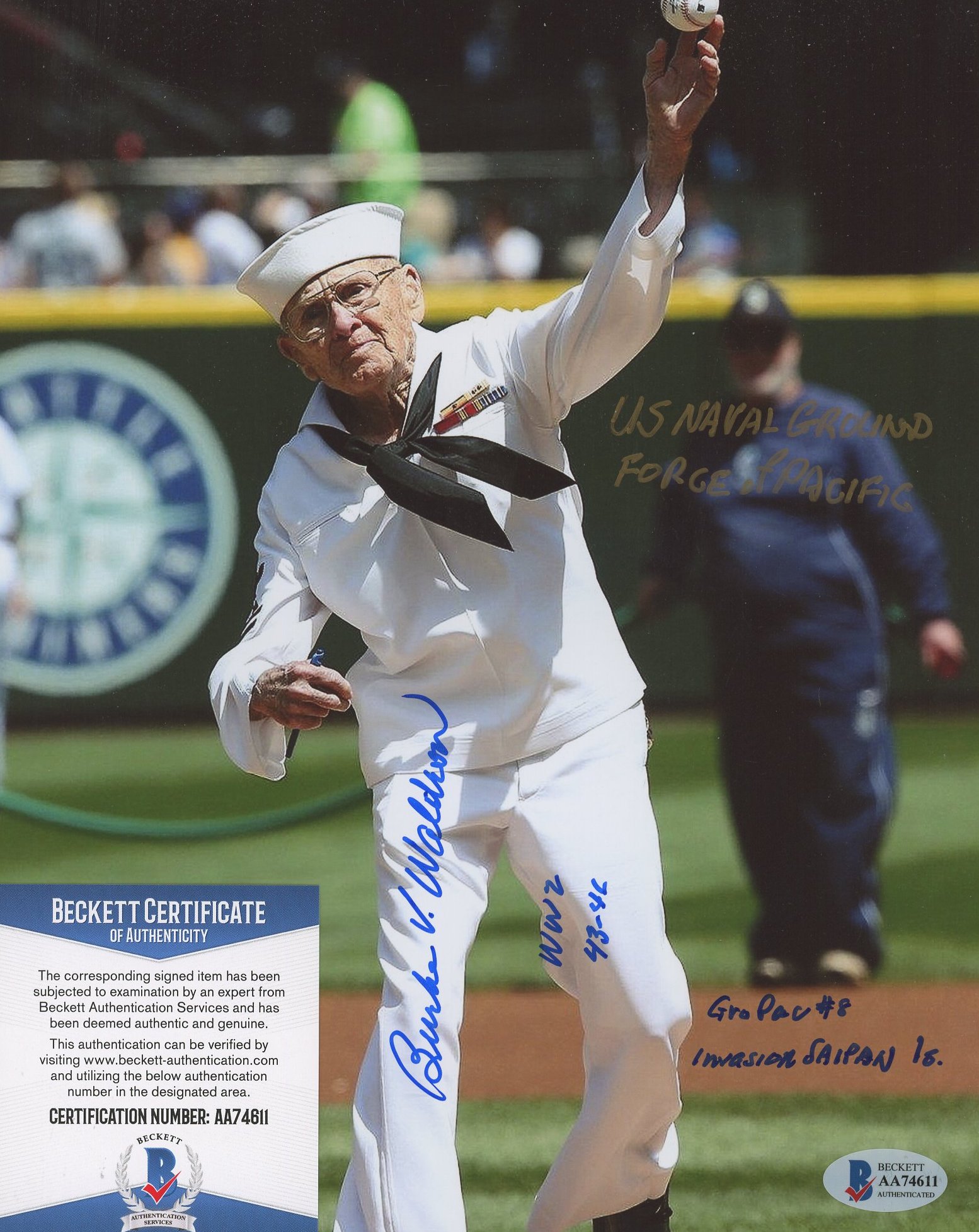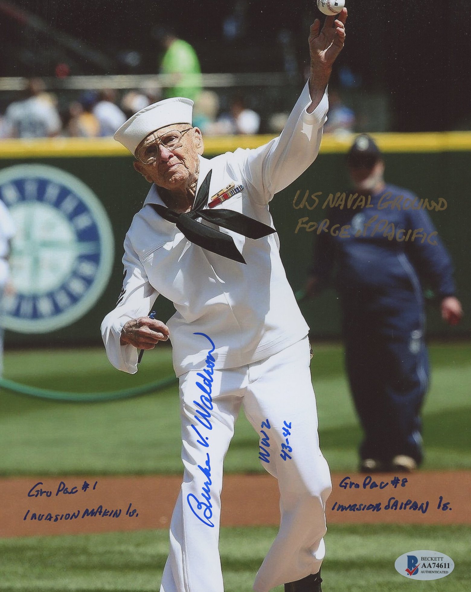 Burke Waldron Signed 8x10 Photo with Multiple Inscriptions (Beckett)