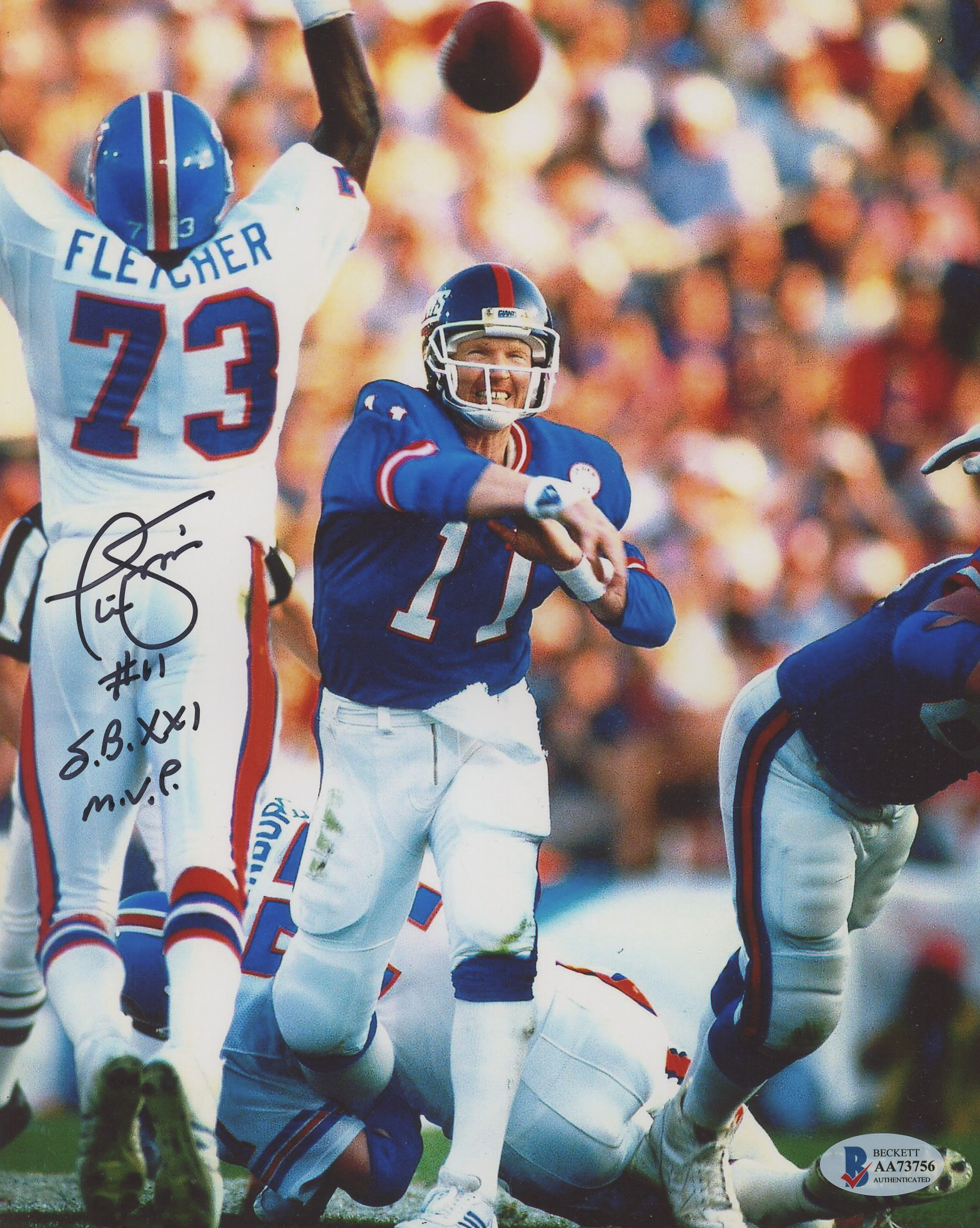 Phil Simms Signed Giants 8x10 Photo Inscribed "S.B. XXI M.V.P." (Beckett)