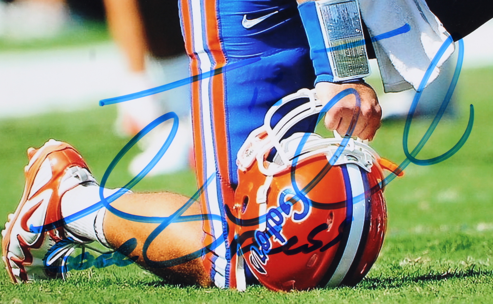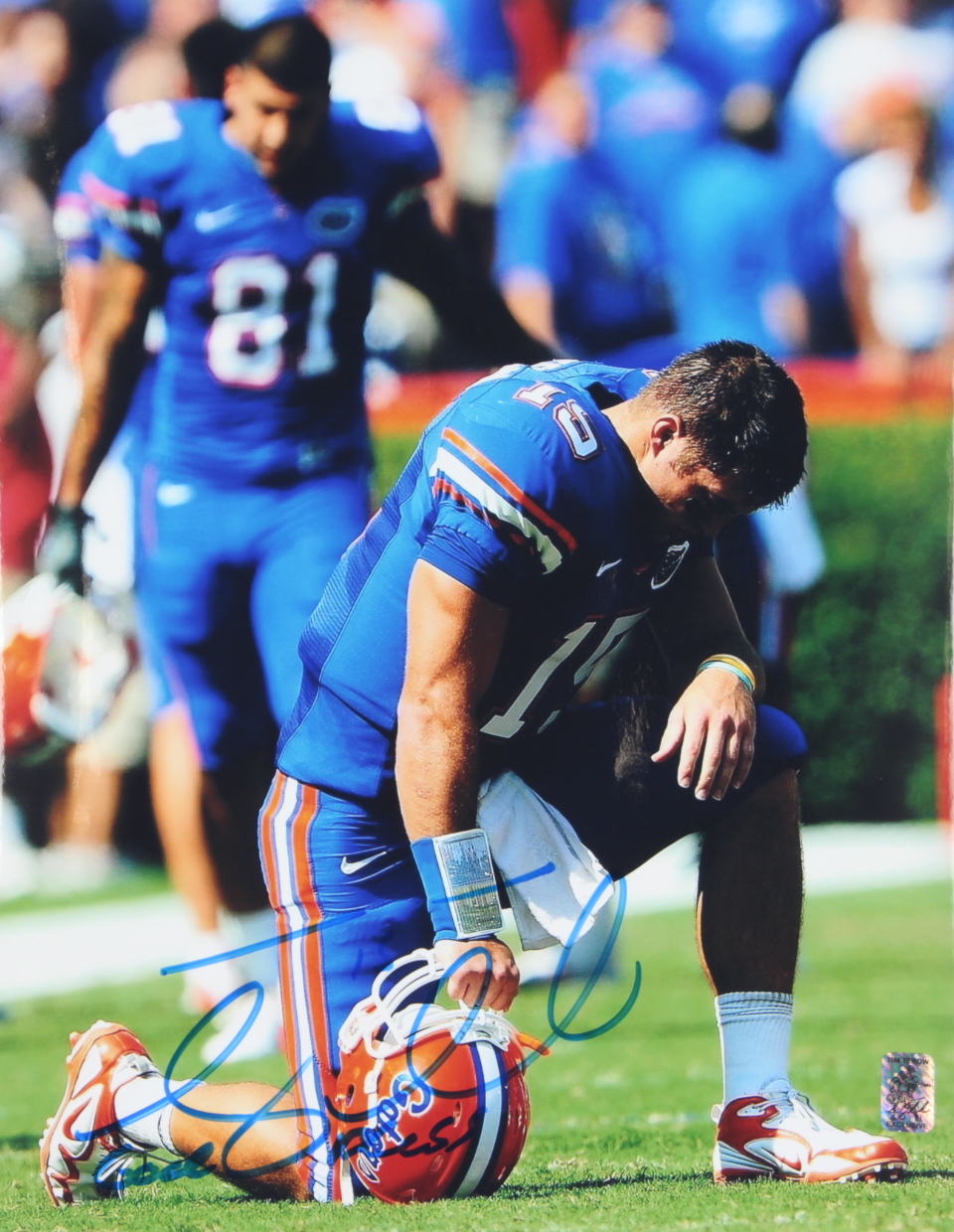 Photo measures 11" x 14" in size and has been hand-signed and inscribed by Tim Tebow (Florida Gators).