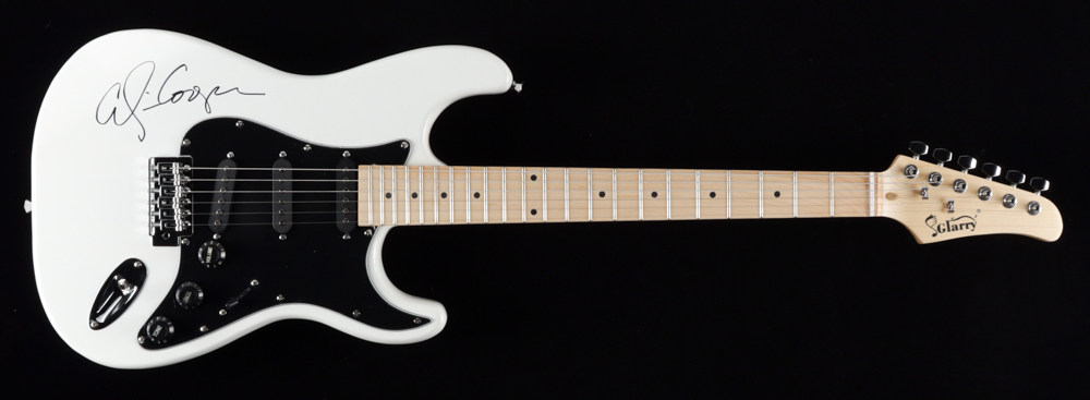 Full-size Glarry electric guitar measures approximately 39" in length and is hand-signed on the body by Alice Cooper.
