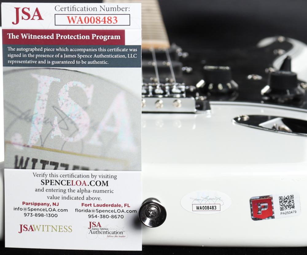 The guitar includes an official James Spence Authentication (JSA) hologram and matching COA as well as an official Pristine Authentic tamper-proof hologram and matching COA for authenticity purposes. The signing of this item was witnessed by JSA.