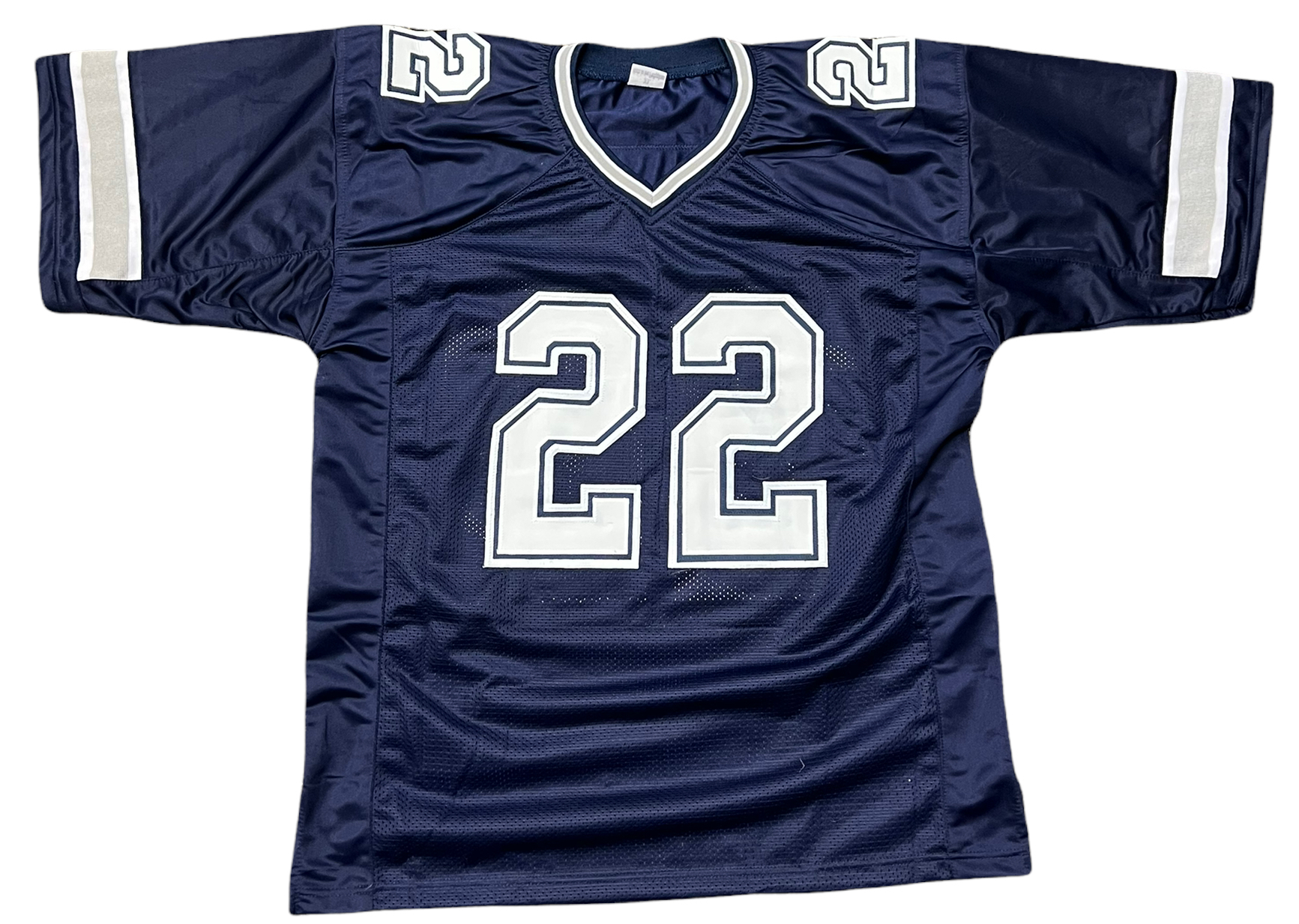 Custom on-field style jersey. Everything sewn on, size XL. Hand-signed by Emmitt Smith (HOF).