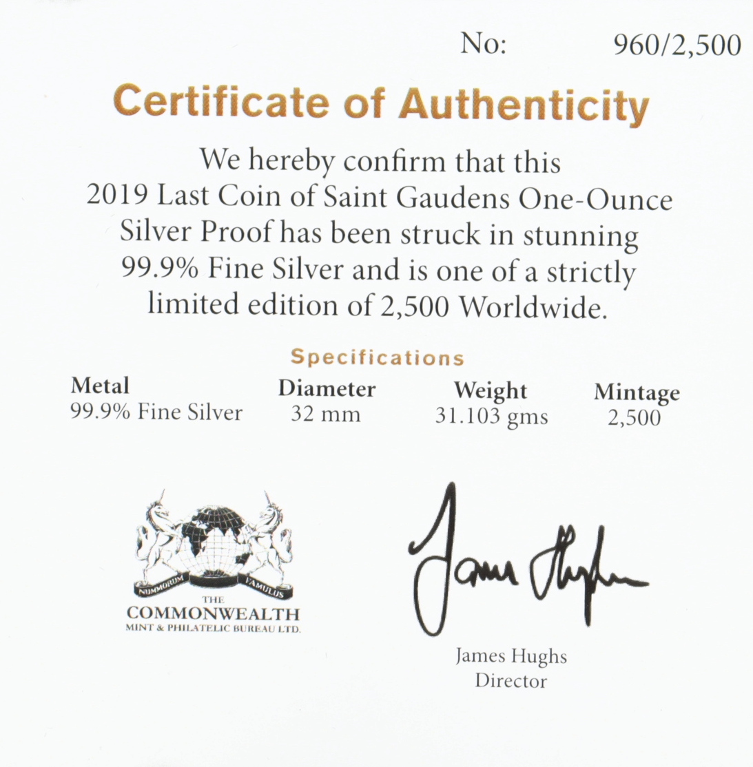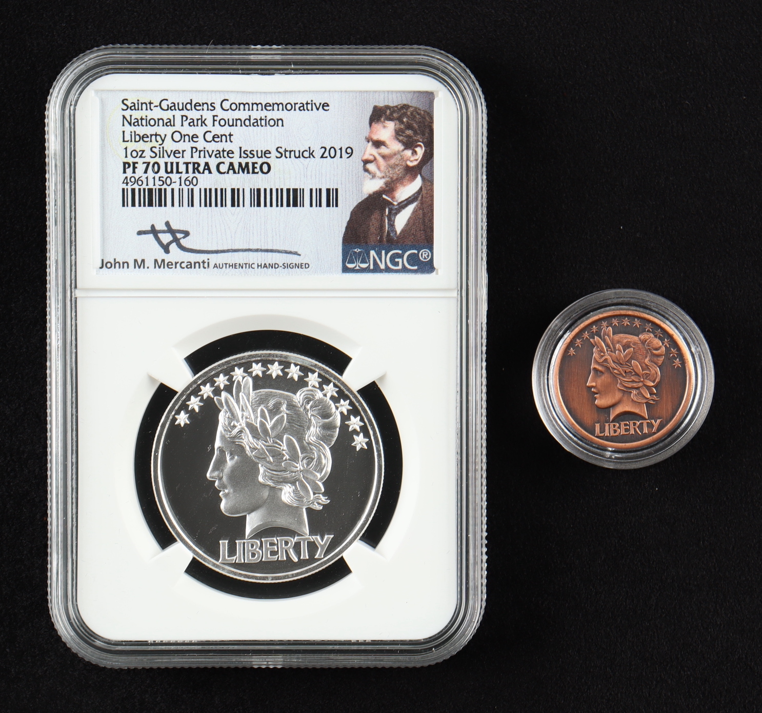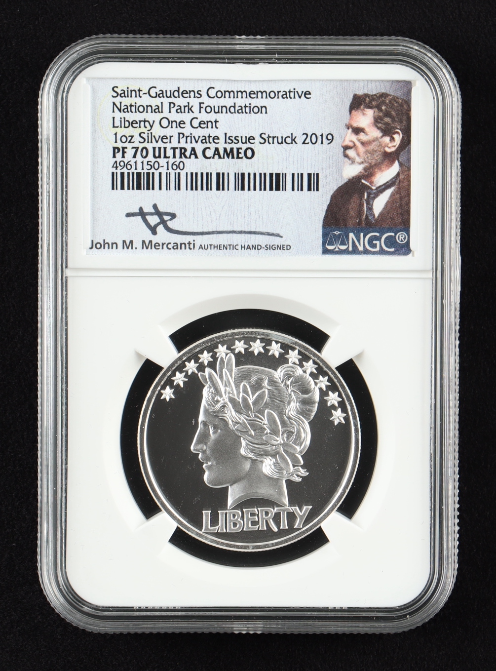 2019 Saint-Gaudens Commemorative National Park Foundation 1 oz. .999 Fine Silver High Relief Coin With Display Case - John Mercanti Signed Label (NGC PF70 Ultra Cameo)