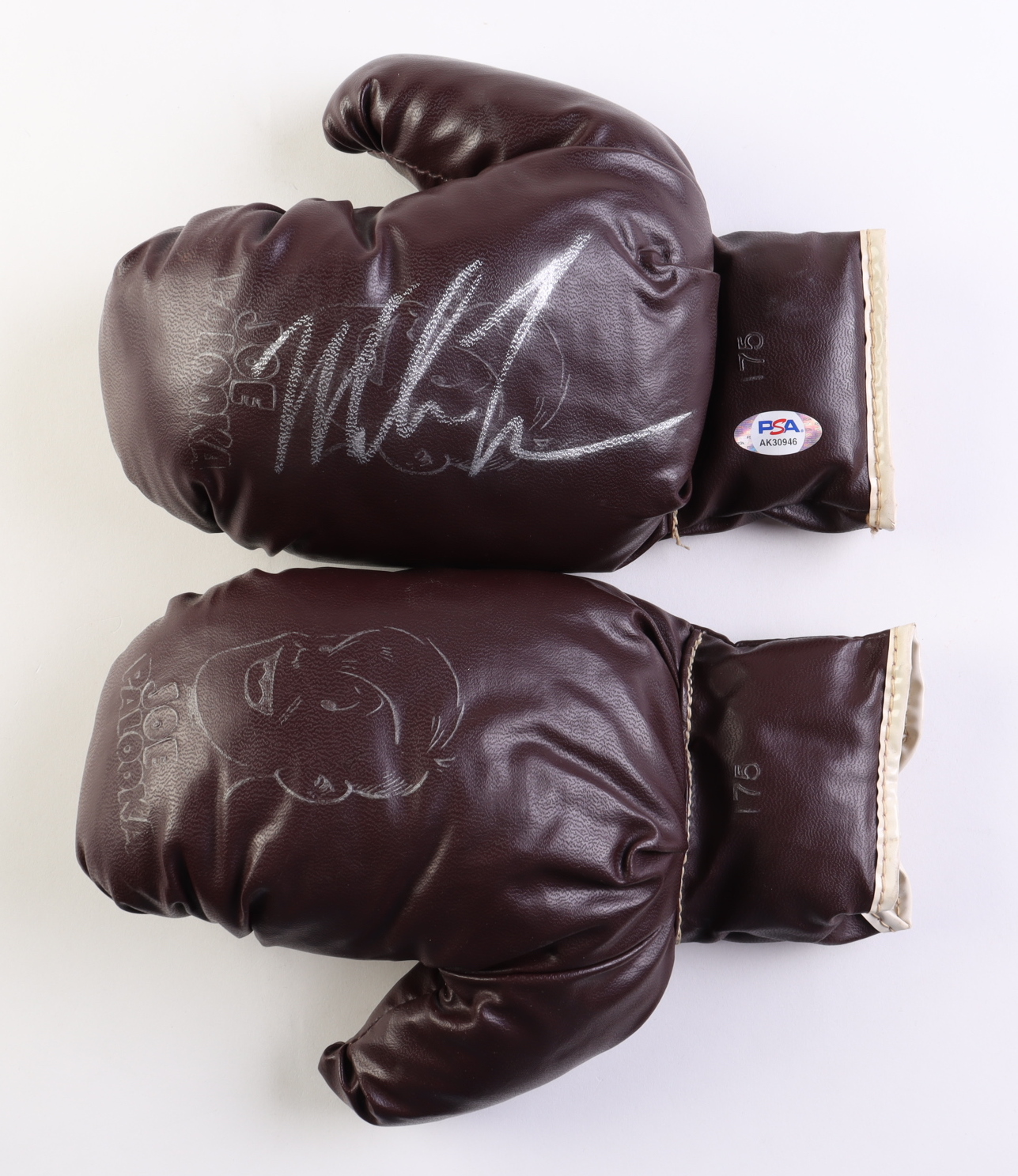 Pair of Joe Palooka boxing gloves. The left glove has been hand-signed by Mike Tyson (HOF).
