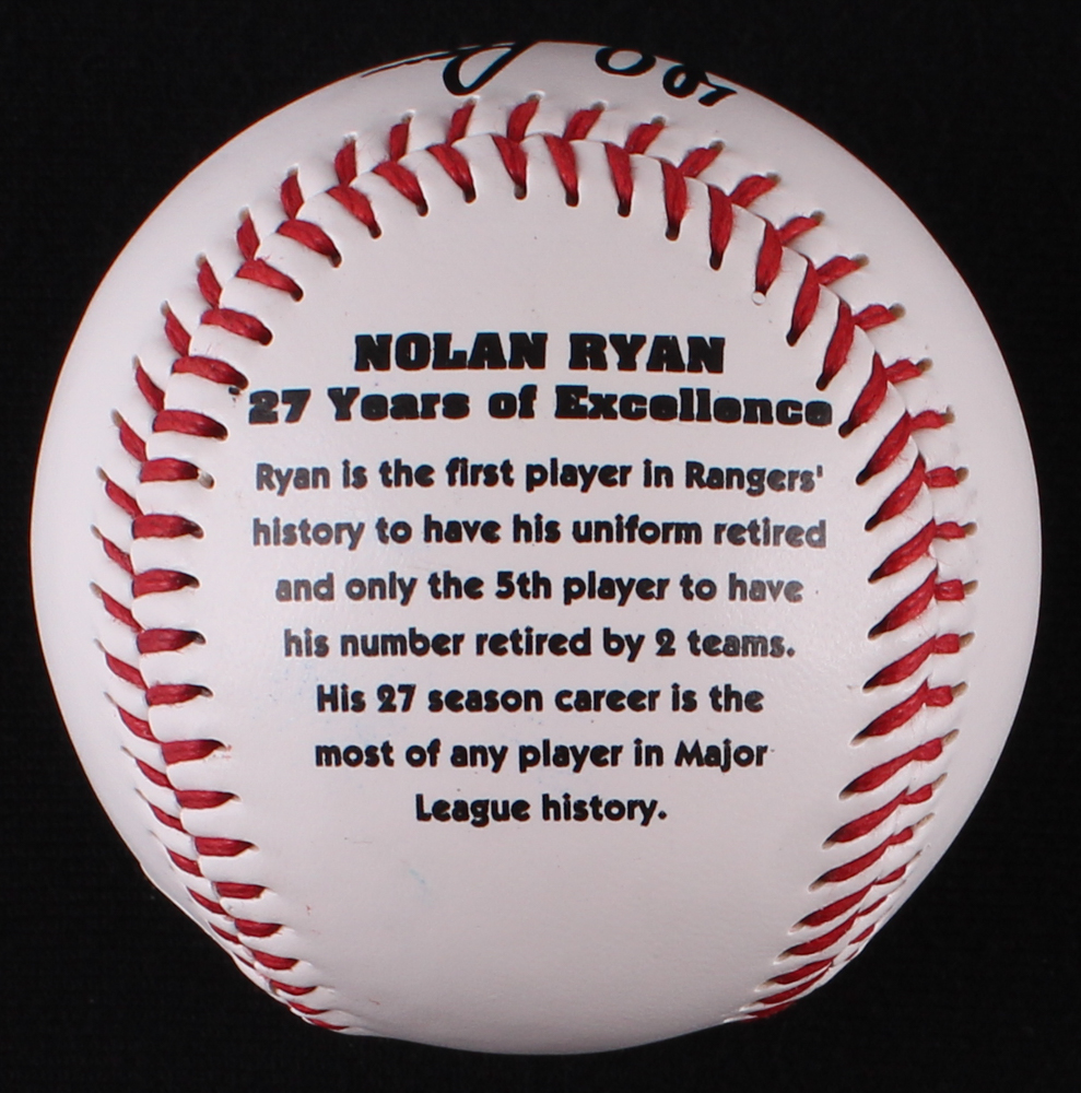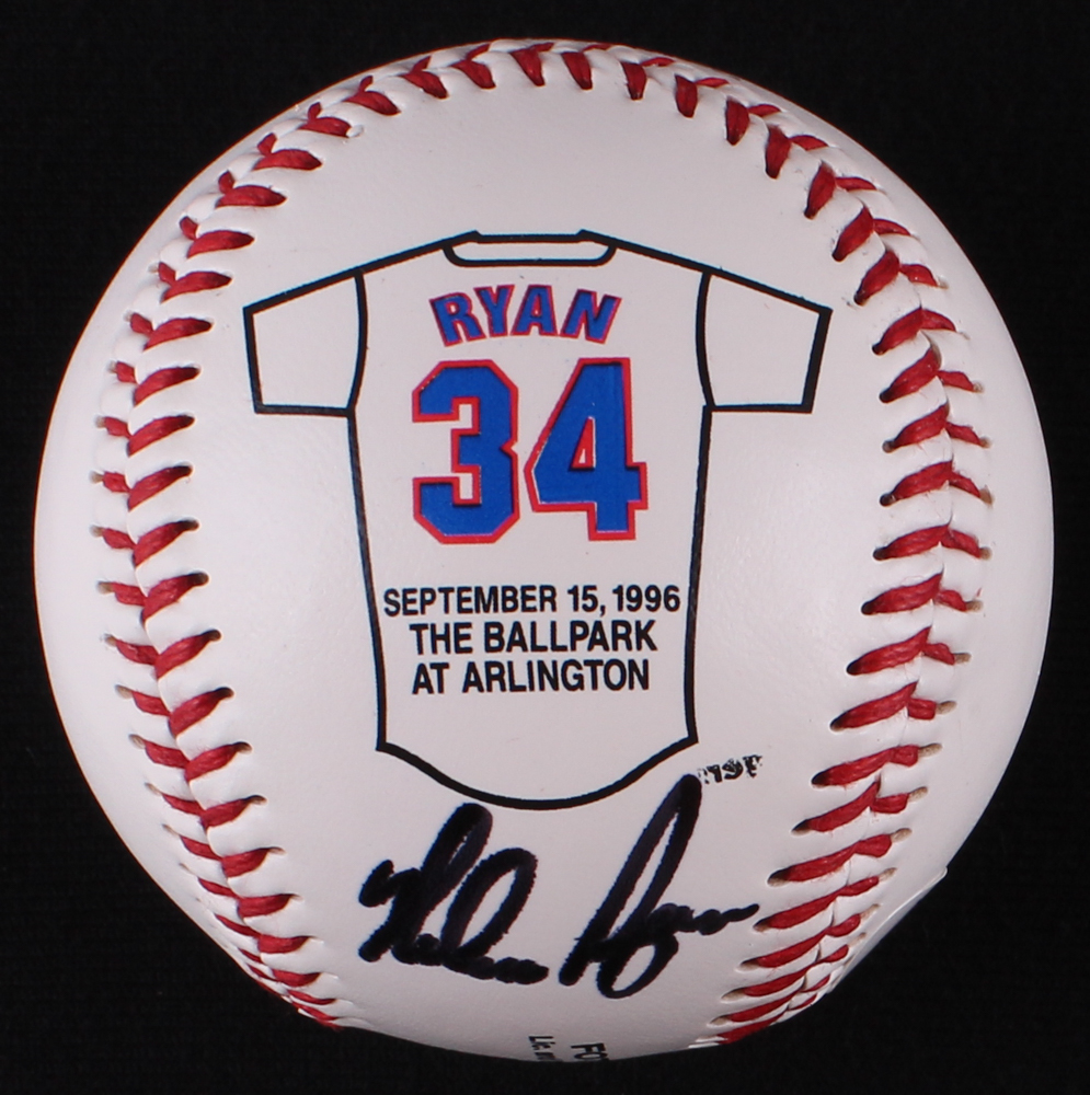 Limited Edition Nolan Ryan "The Ballpark Arlington" Commemorative Baseball. Hand-signed in black felt-tip pen by Nolan Ryan (Mets HOF).
