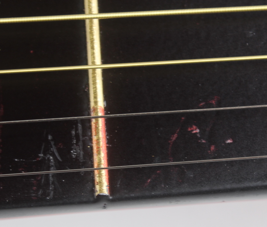 This guitar is a display guitar. It is a lower-tier version and is not the same quality as one that a musician would play.
