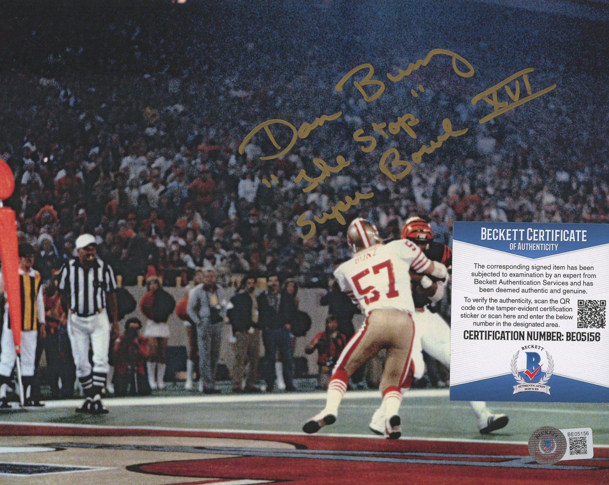 Dan Bunz Signed 49ers 8x10 Photo Inscribed "'The Stop'" & "Super Bowl XVI" (Beckett)
