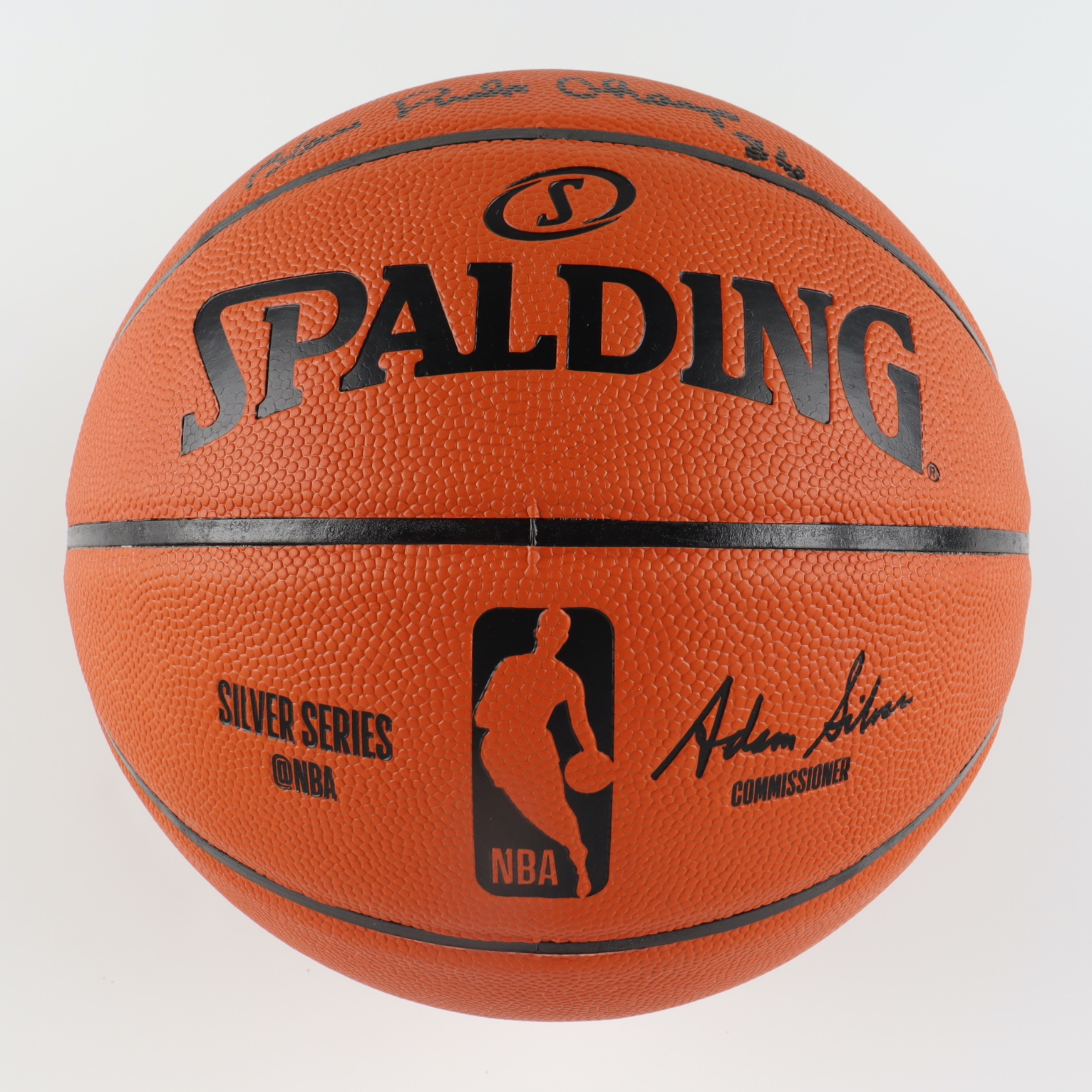 Spalding NBA Silver Series Game Replica basketball. Hand-signed and inscribed by Spud Webb (Atlanta Hawks). Please see photos regarding the condition of the ball.