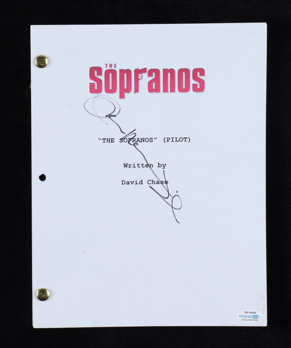 "The Sopranos: Pilot" episode replica script has been hand-signed by John Ventimiglia.
