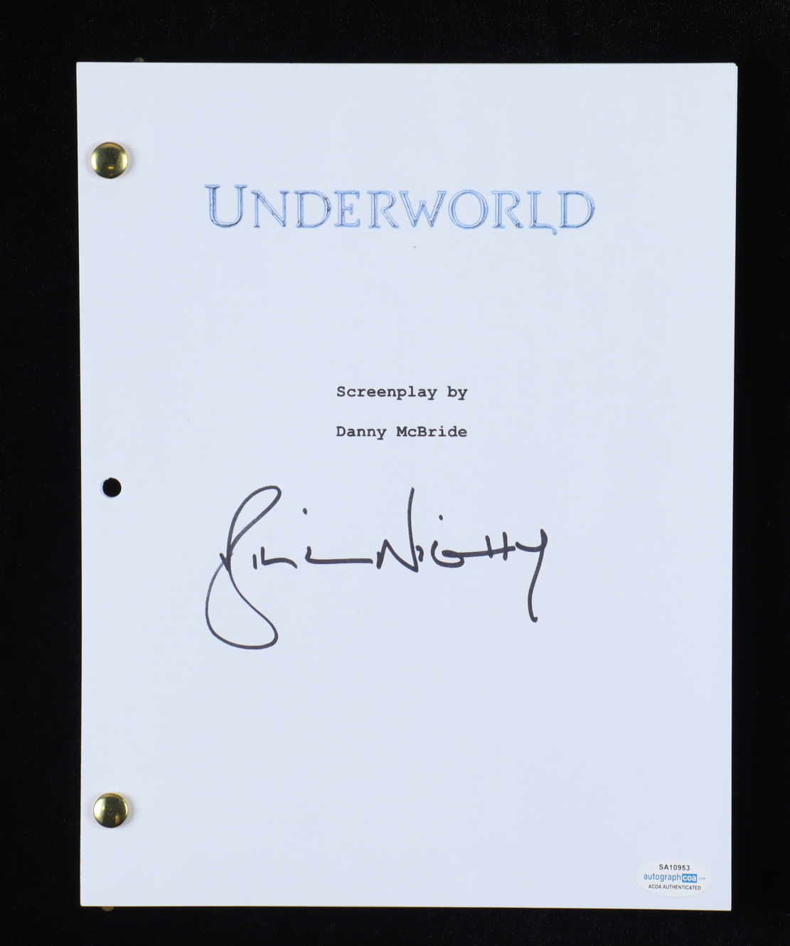 "Underworld" movie replica script has been hand-signed by Bill Nighy.