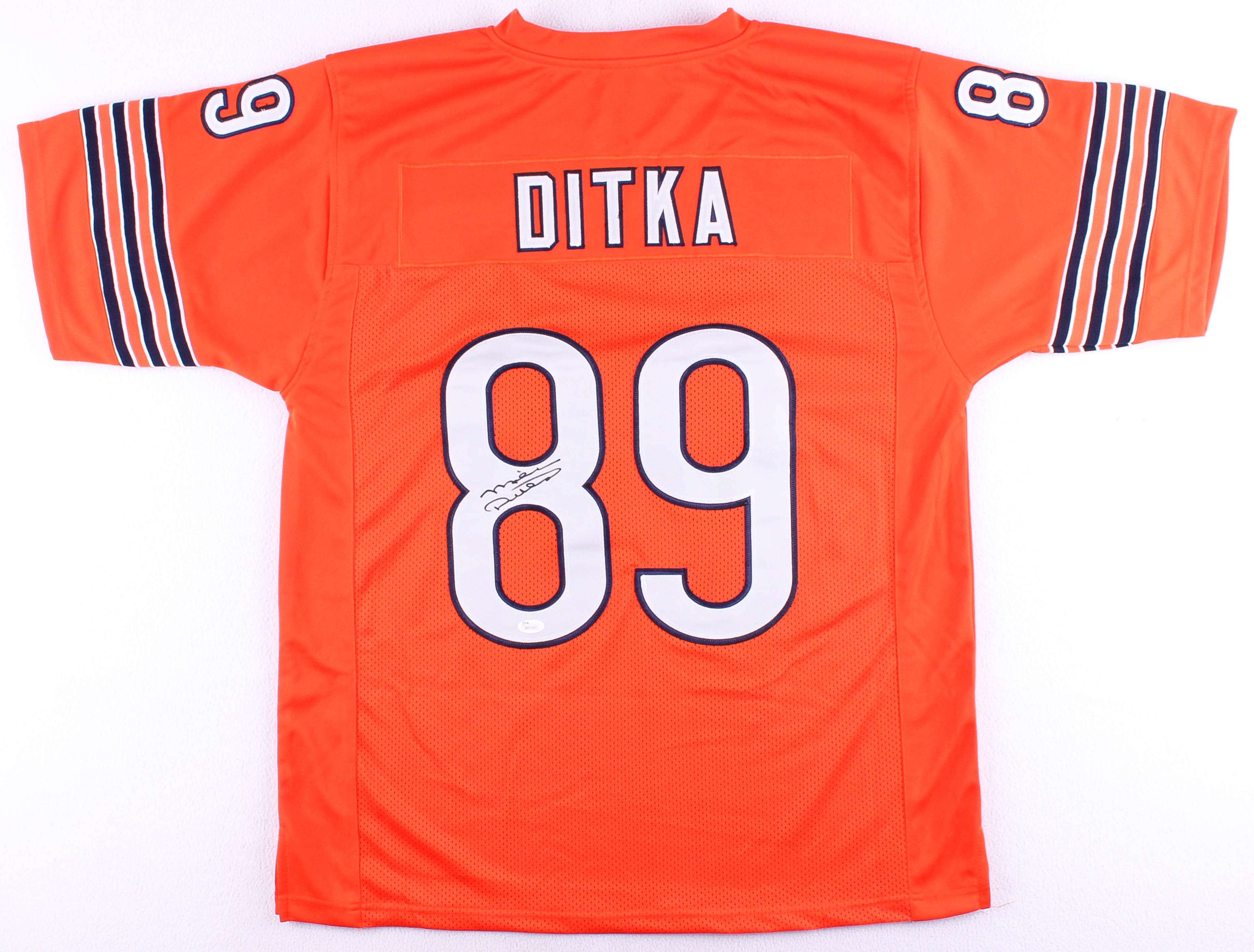 Custom on-field style jersey. Everything sewn on, size XL. Hand-signed in black felt-tip pen by Mike Ditka (Bears, HOF).