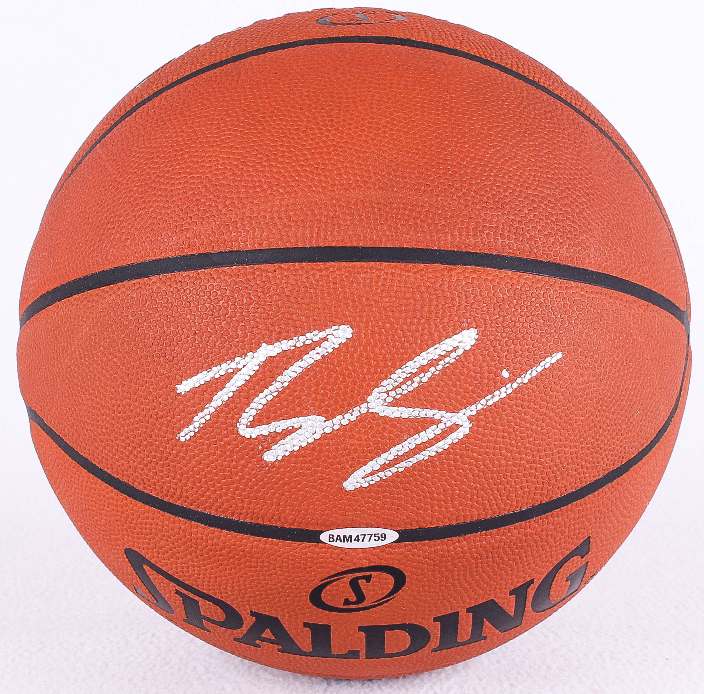 Official Spalding NBA Game Basketball. Hand-signed in silver paint pen by Ben Simmons (76ers).