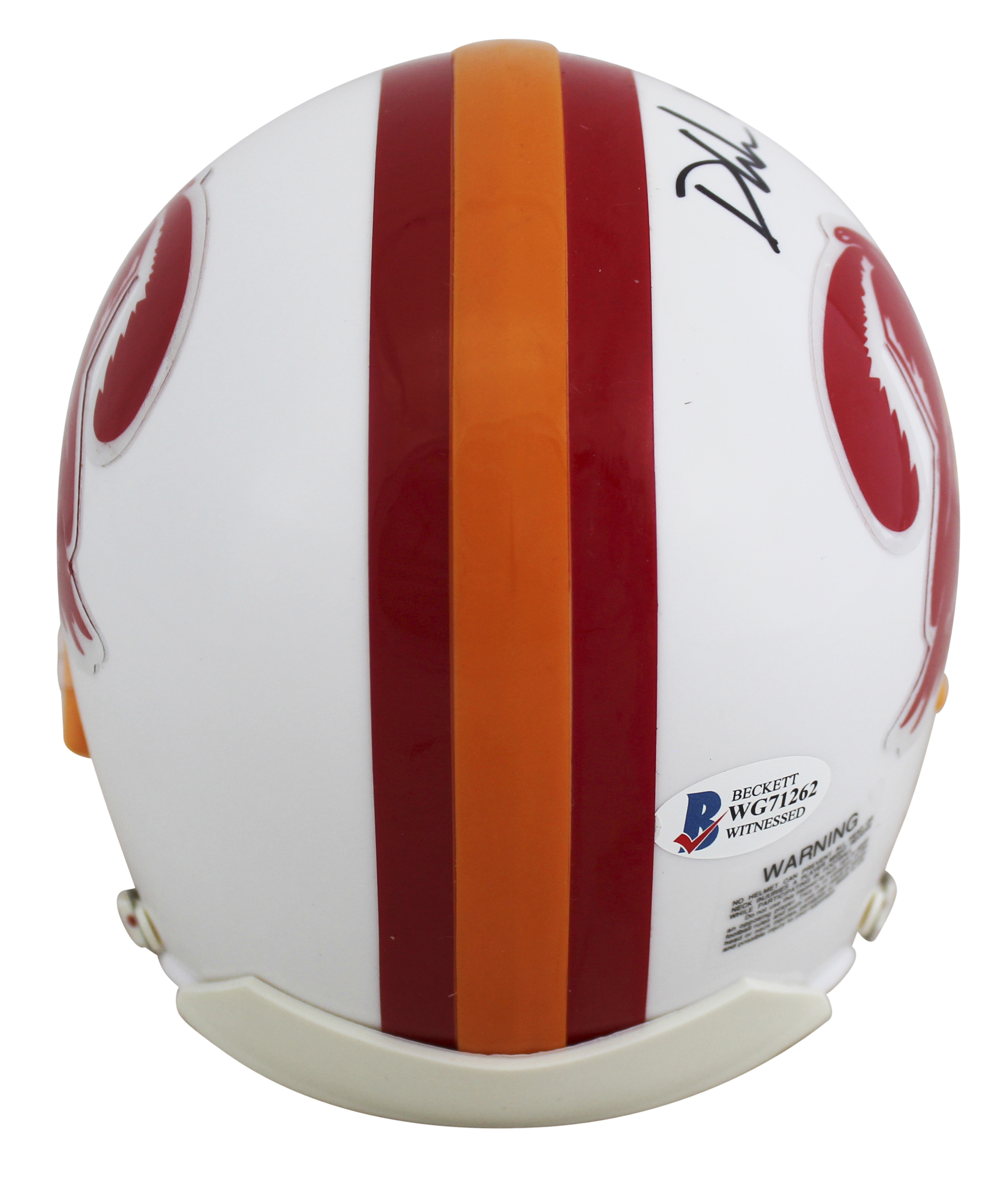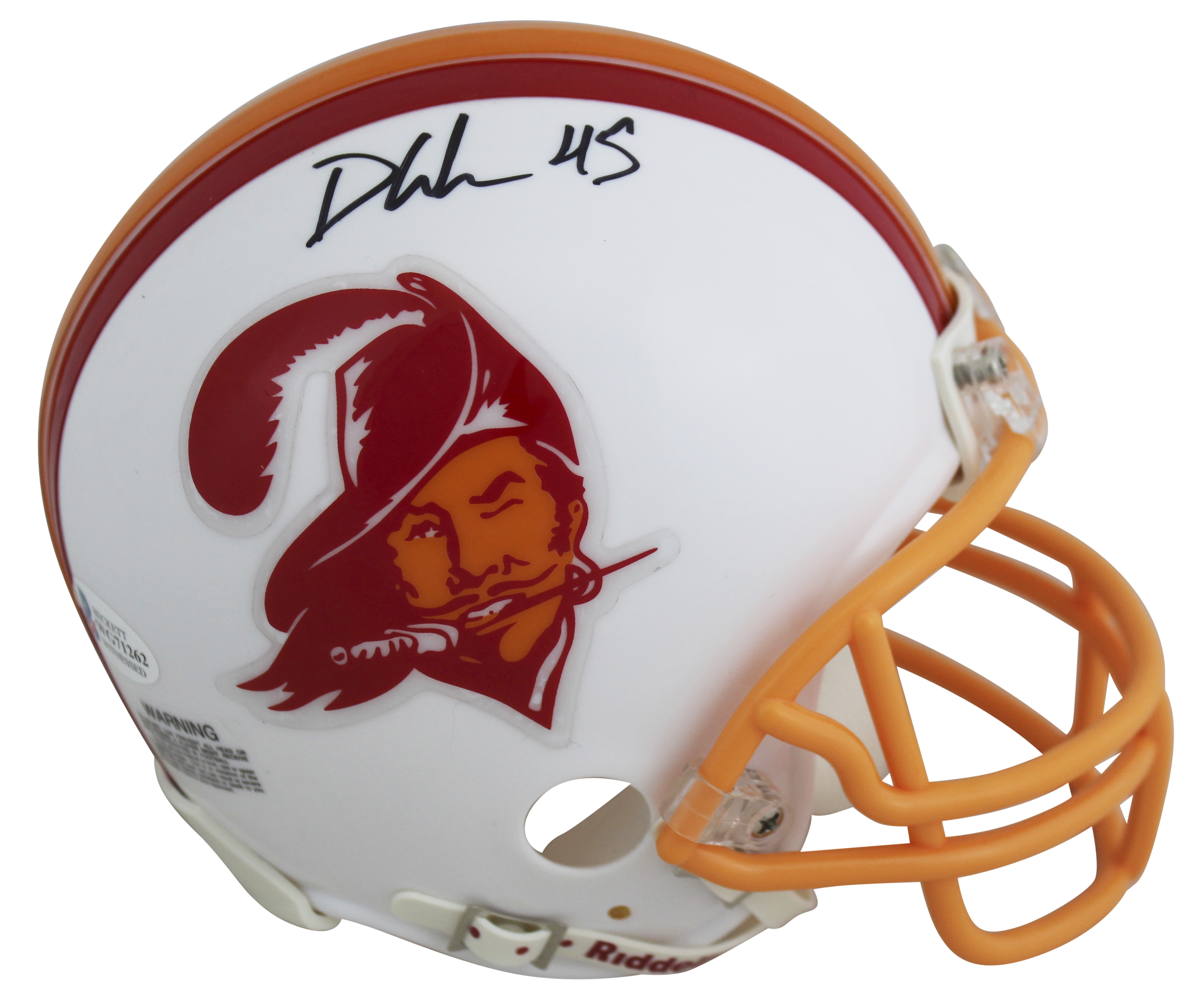 Riddell Tampa Bay Buccaneers Throwback mini helmet. Hand-signed by Devin White.