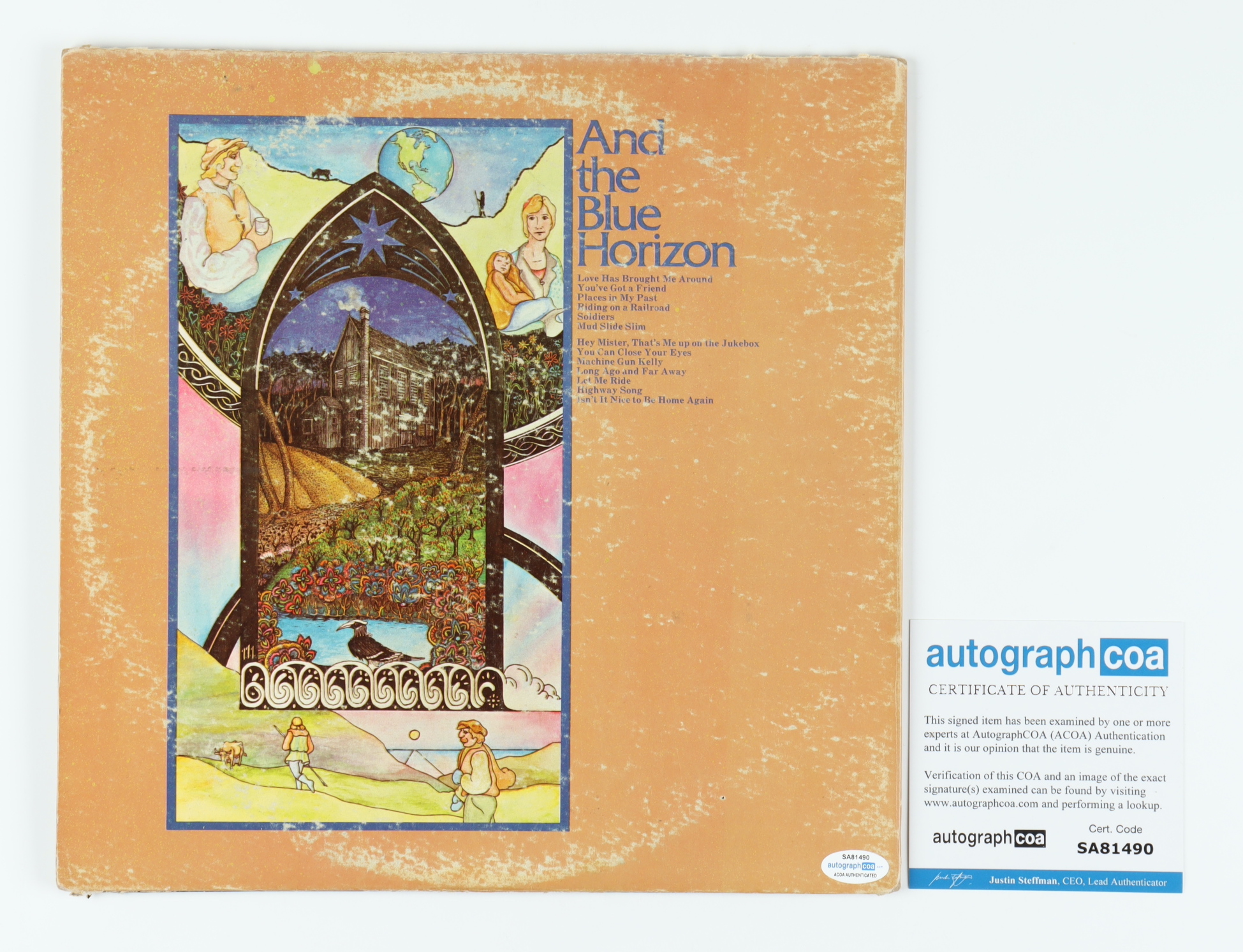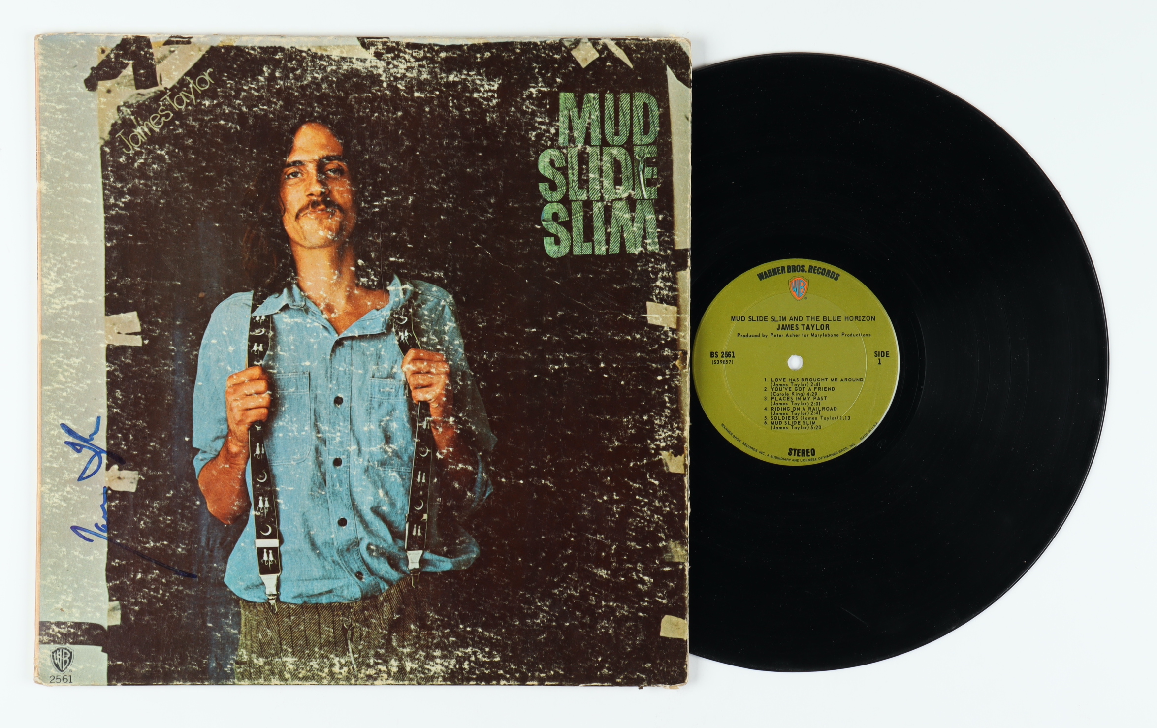 "Mud Slide Slim and the Blue Horizon" vinyl record album cover has been hand-signed by James Taylor.