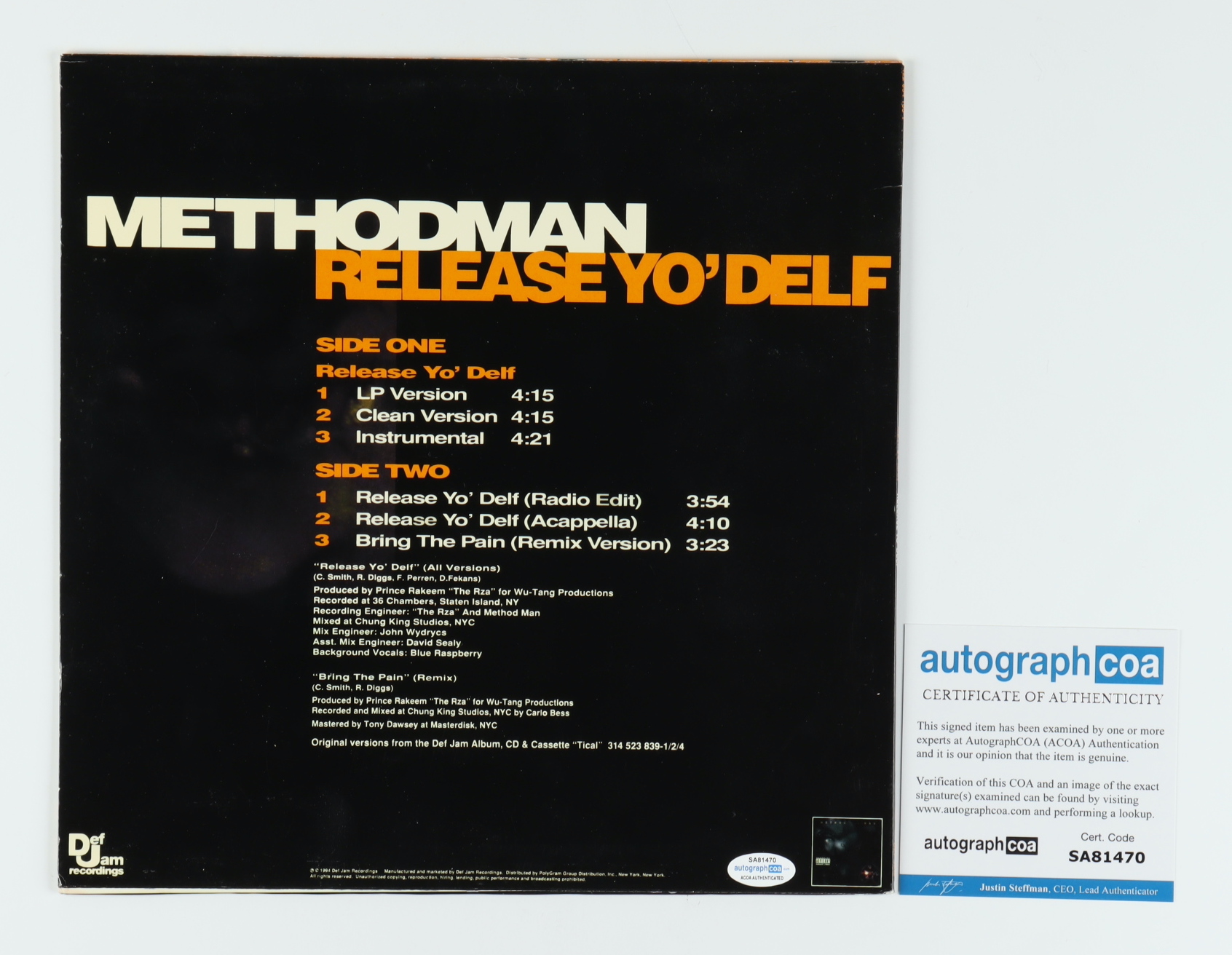 Method Man Signed "Release Yo' Delf" Vinyl Record Album Cover (ACOA)