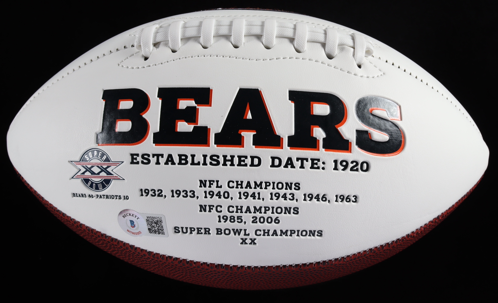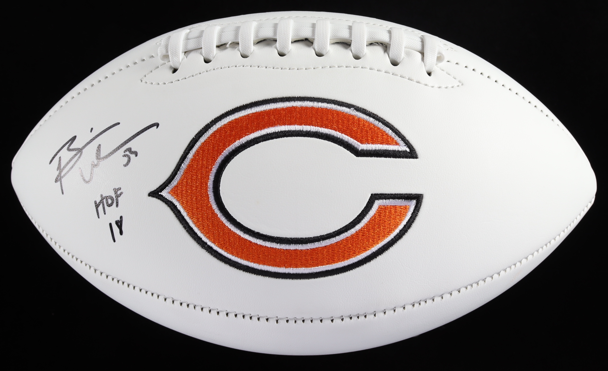 Chicago Bears logo football. Hand-signed and inscribed by Brian Urlacher (HOF).