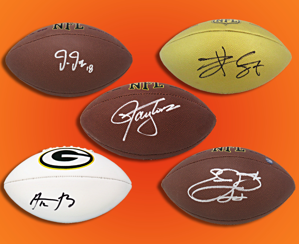 2 Signed Football Flats (8x10s, 16x20s, Encapsulated Cards)
