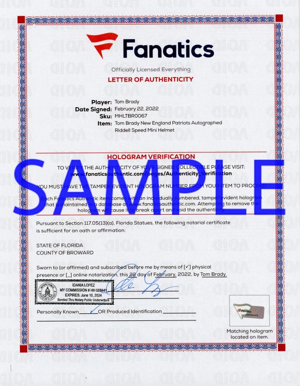 The lot / autograph(s) includes an official Fanatics hologram and matching Letter of Authenticity for authenticity purposes.