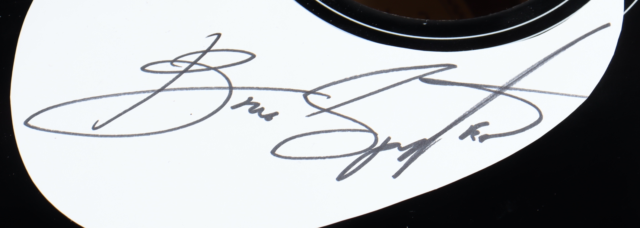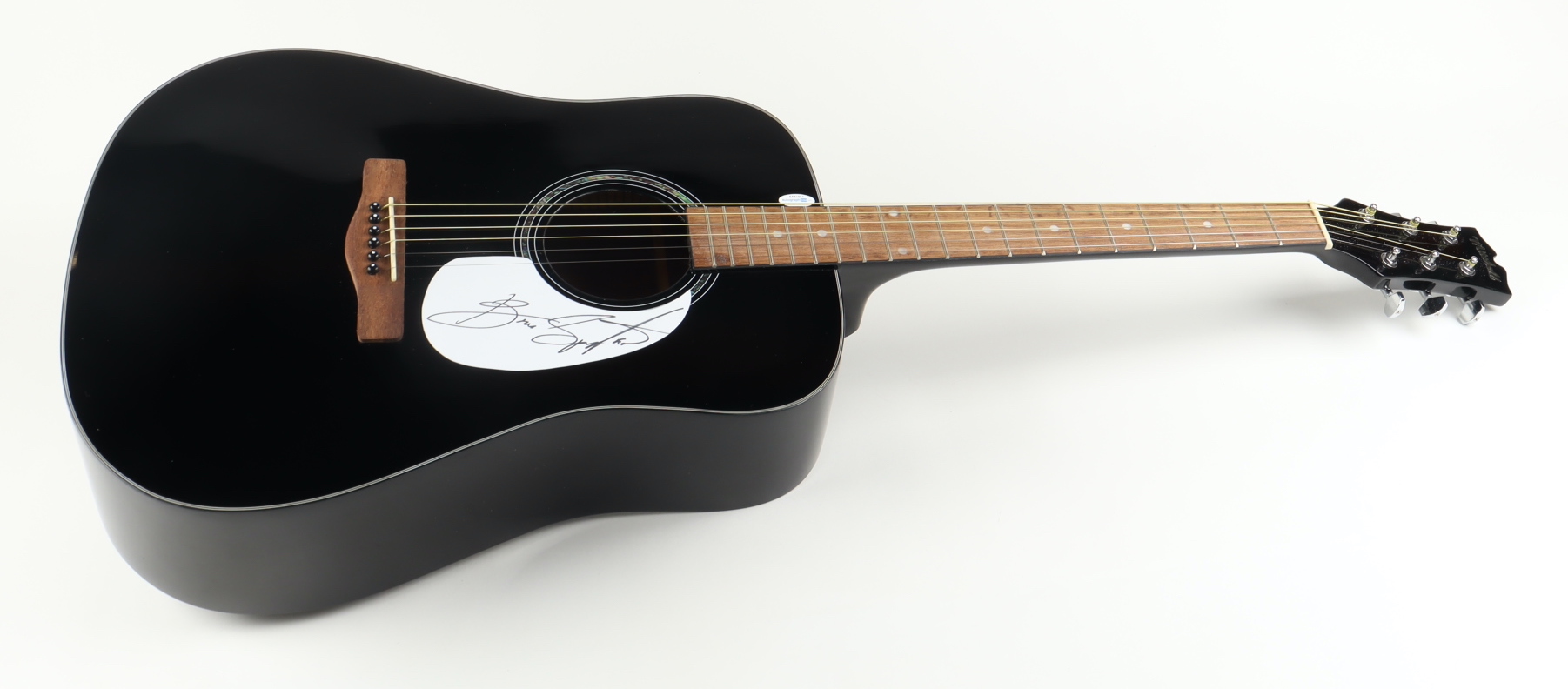Mitchell acoustic guitar measures approximately 40" in size and has been hand-signed on the pick guard by Bruce Springsteen.