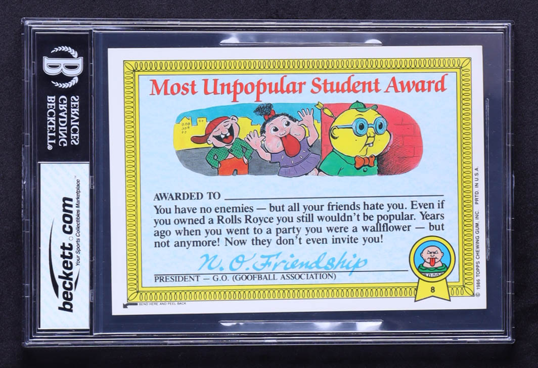 Adam Bomb 1986 Garbage Pail Kids Giant Series One #8B (Most Unpopular Student Award) (BGS 7)