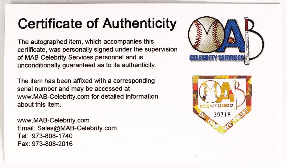 The autograph includes an official MAB Celebrity Services hologram and matching COA for authenticity purposes.