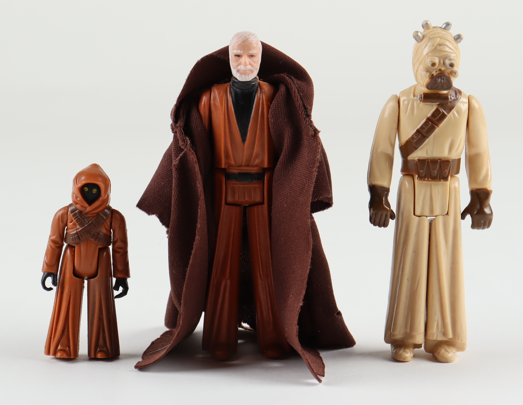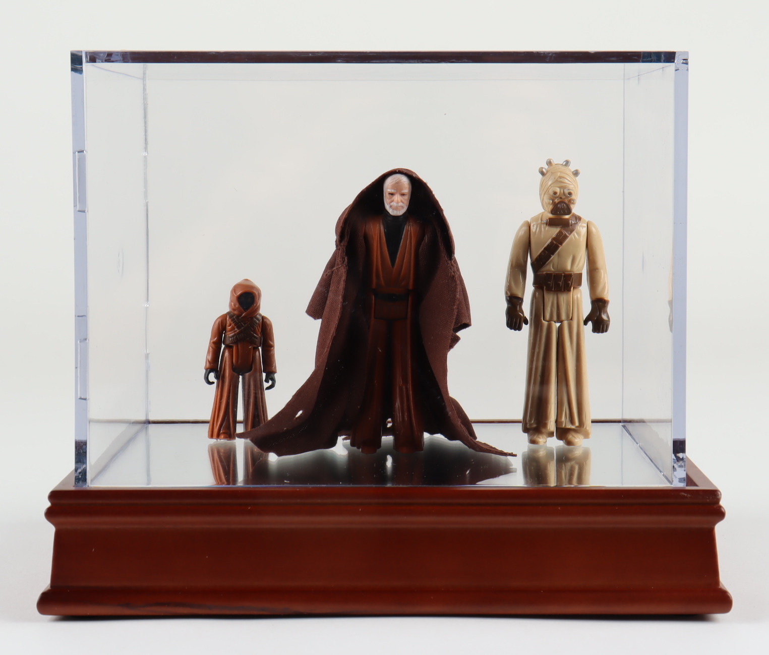 Set of (3) Original 1977 Hasbro "Star Wars" Tatooine Action Figures with Display Case