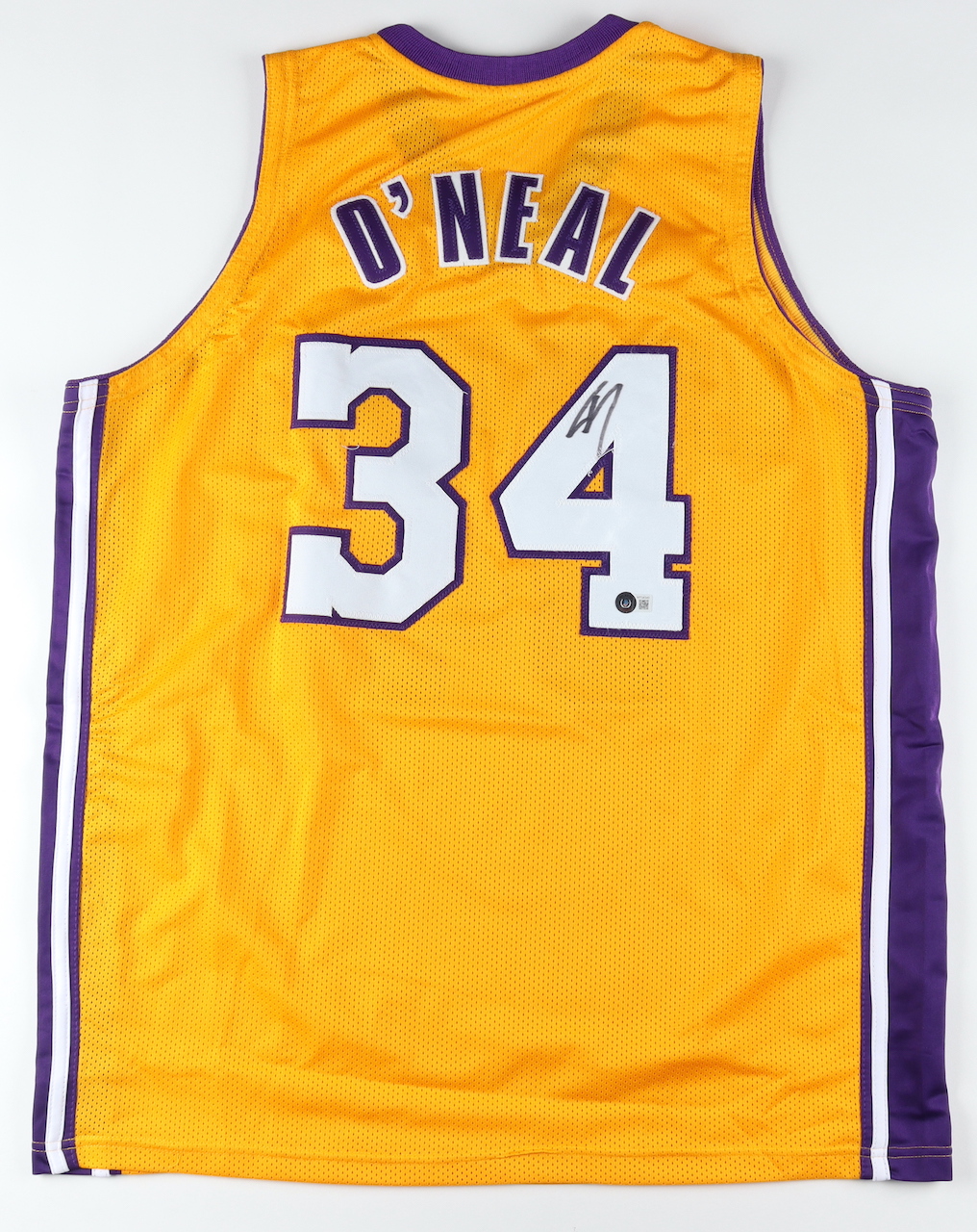 Custom on-court style jersey. Everything is sewn on, size XL. Hand-signed by Shaquille O'Neal (HOF).