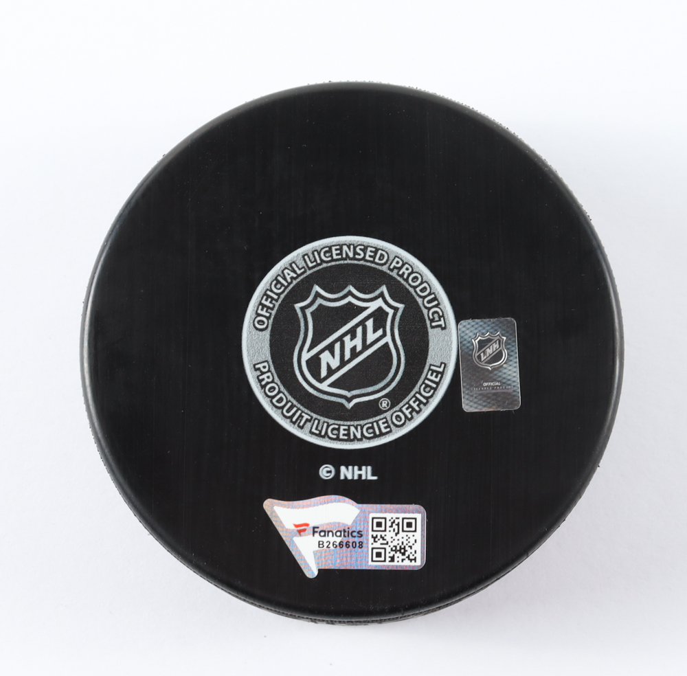 New York Rangers Logo Hockey Puck. Hand-signed by Pavel Buchnevich.