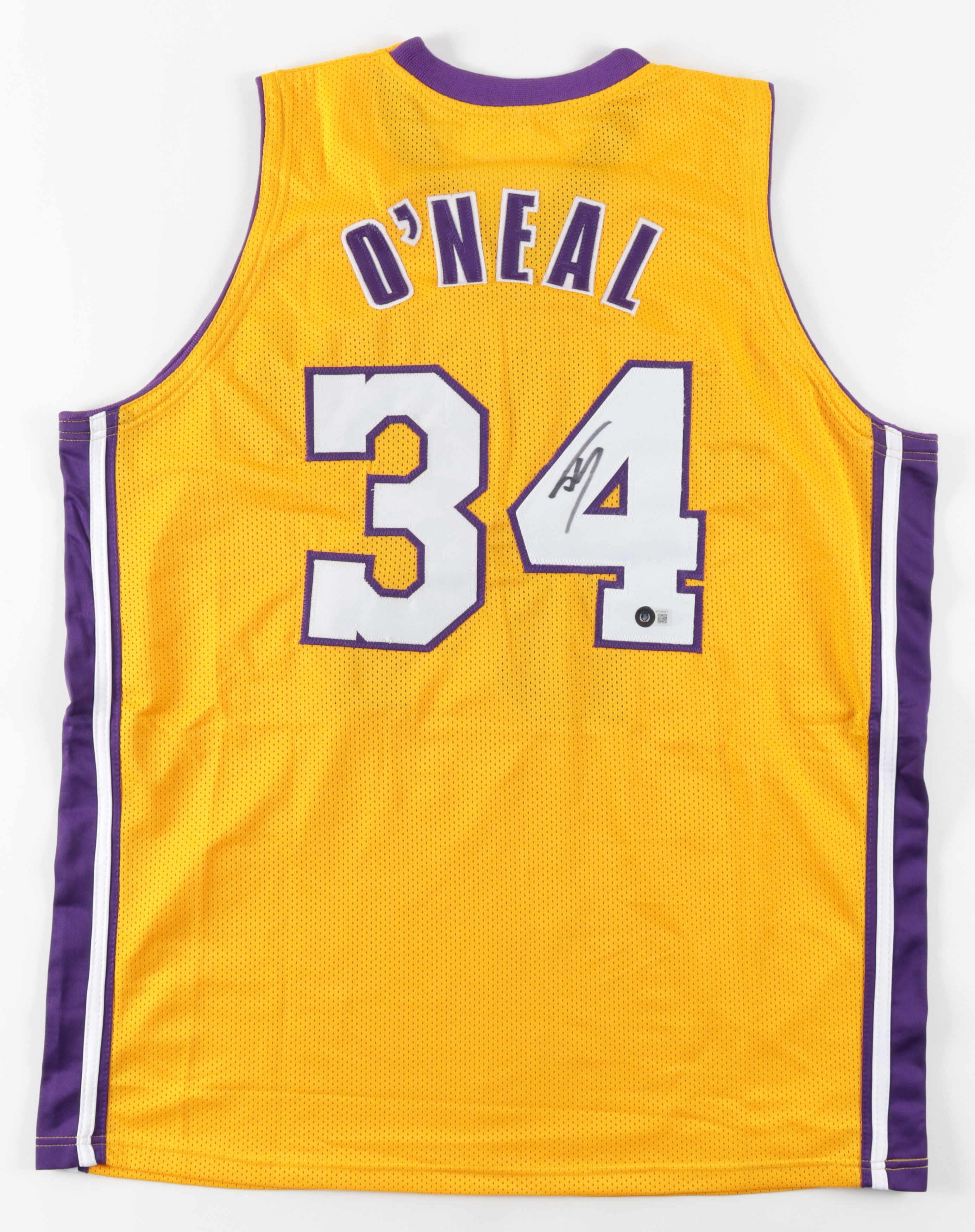 Custom on-court style jersey. Everything is sewn on, size XL. Hand-signed by Shaquille O'Neal (HOF).