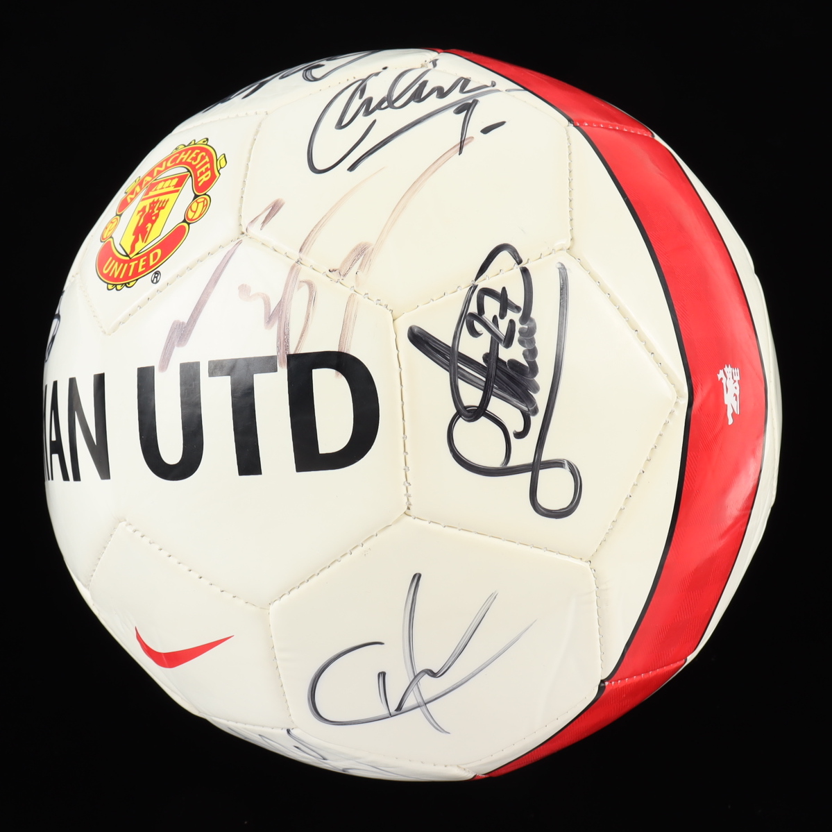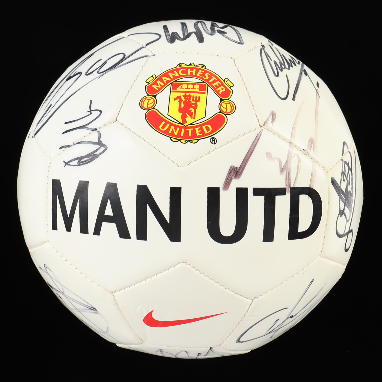 Please note, the ball shows signs of wear throughout and three of the signatures below the red Nike branding are faded.