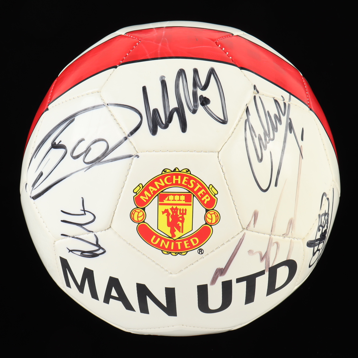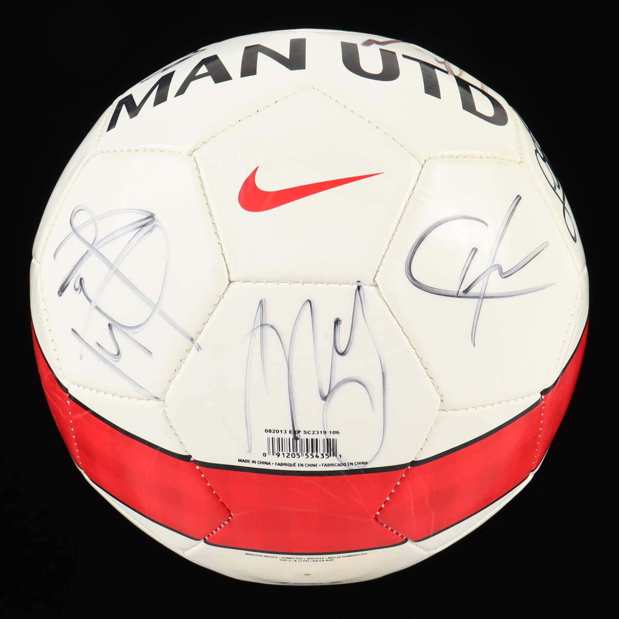 Nike Manchester United F.C. logo soccer ball. Hand-signed by Wayne Rooney, Javier Hernandez and (7) "unidentifiable" signers according to the item's authentication.
