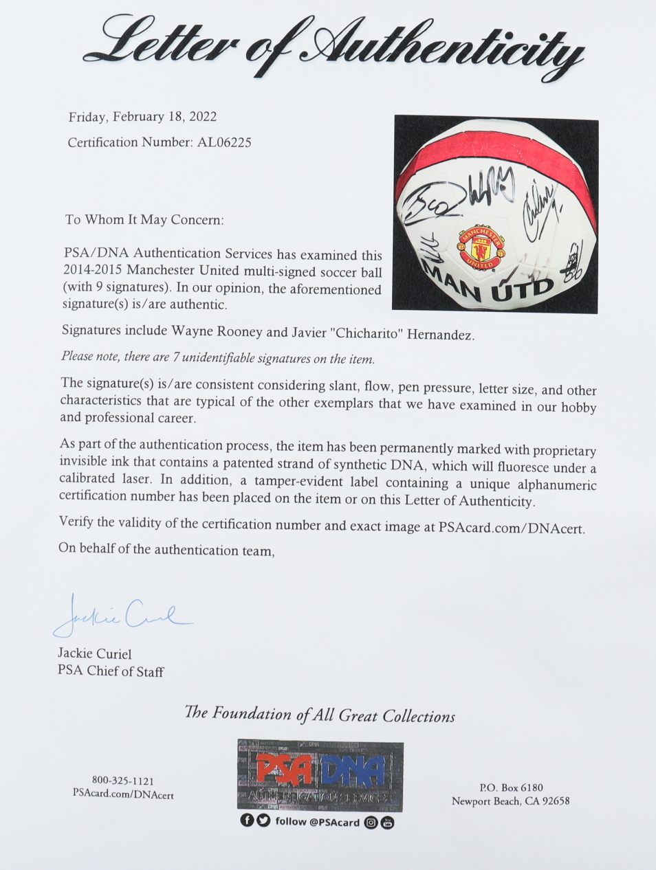 Wayne Rooney & Javier Hernandez Signed Manchester United Logo Soccer Ball with (7) Others (PSA)