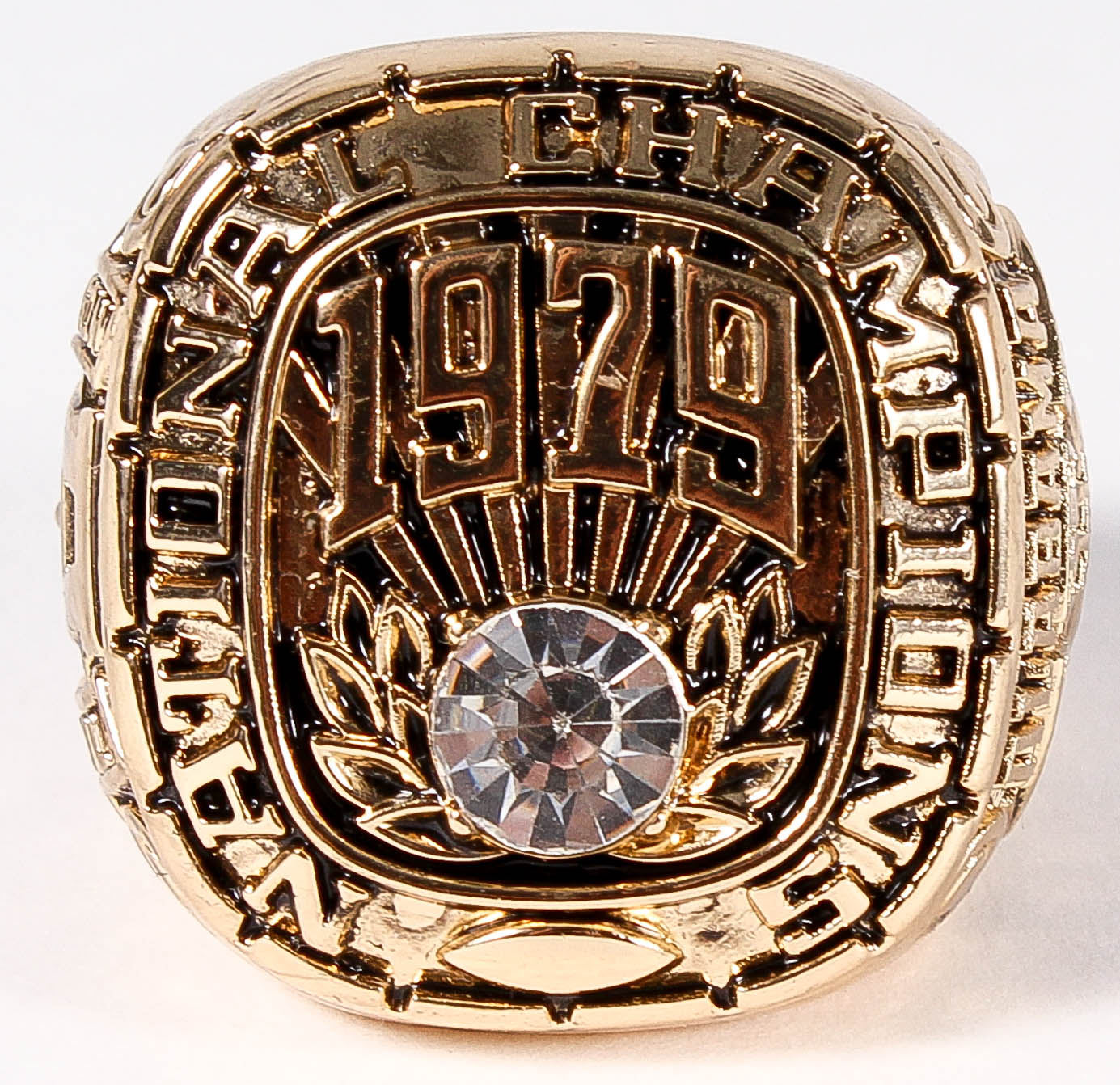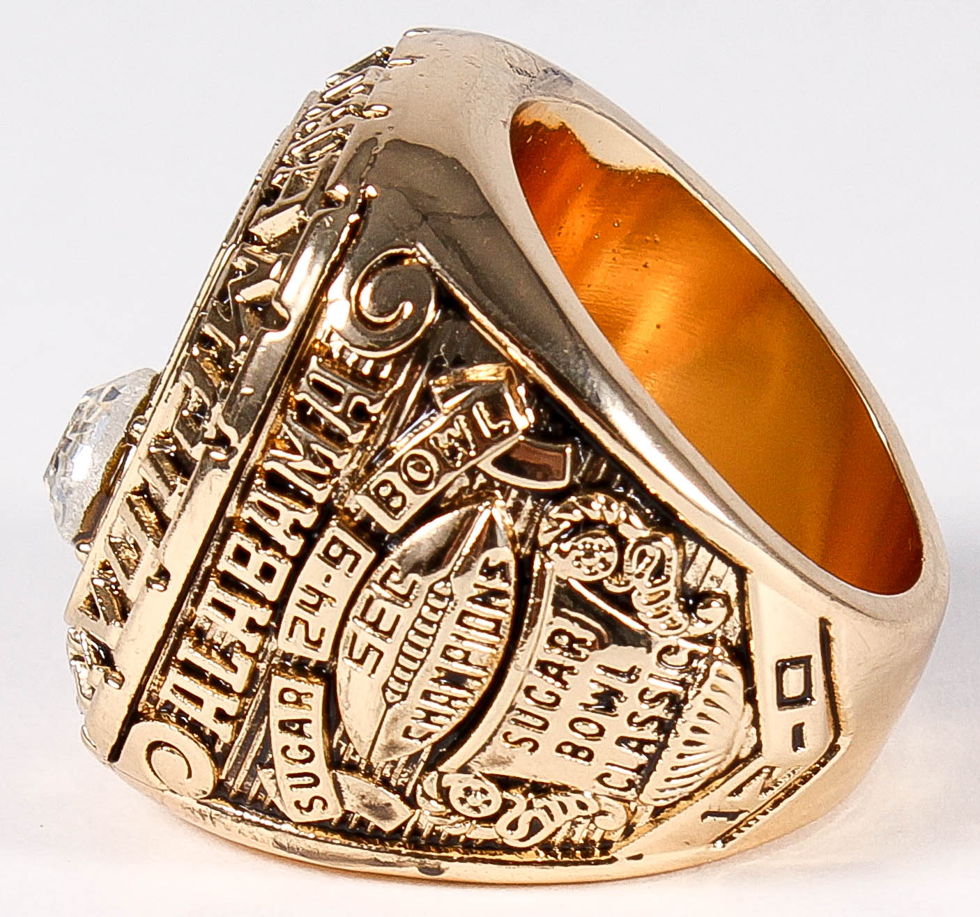 Bear Bryant Alabama High Quality Replica 1979 National Champions Ring. The ring has been hand crafted by professional jewelers. Made of metal alloy and clad with gold. Size 10.5.