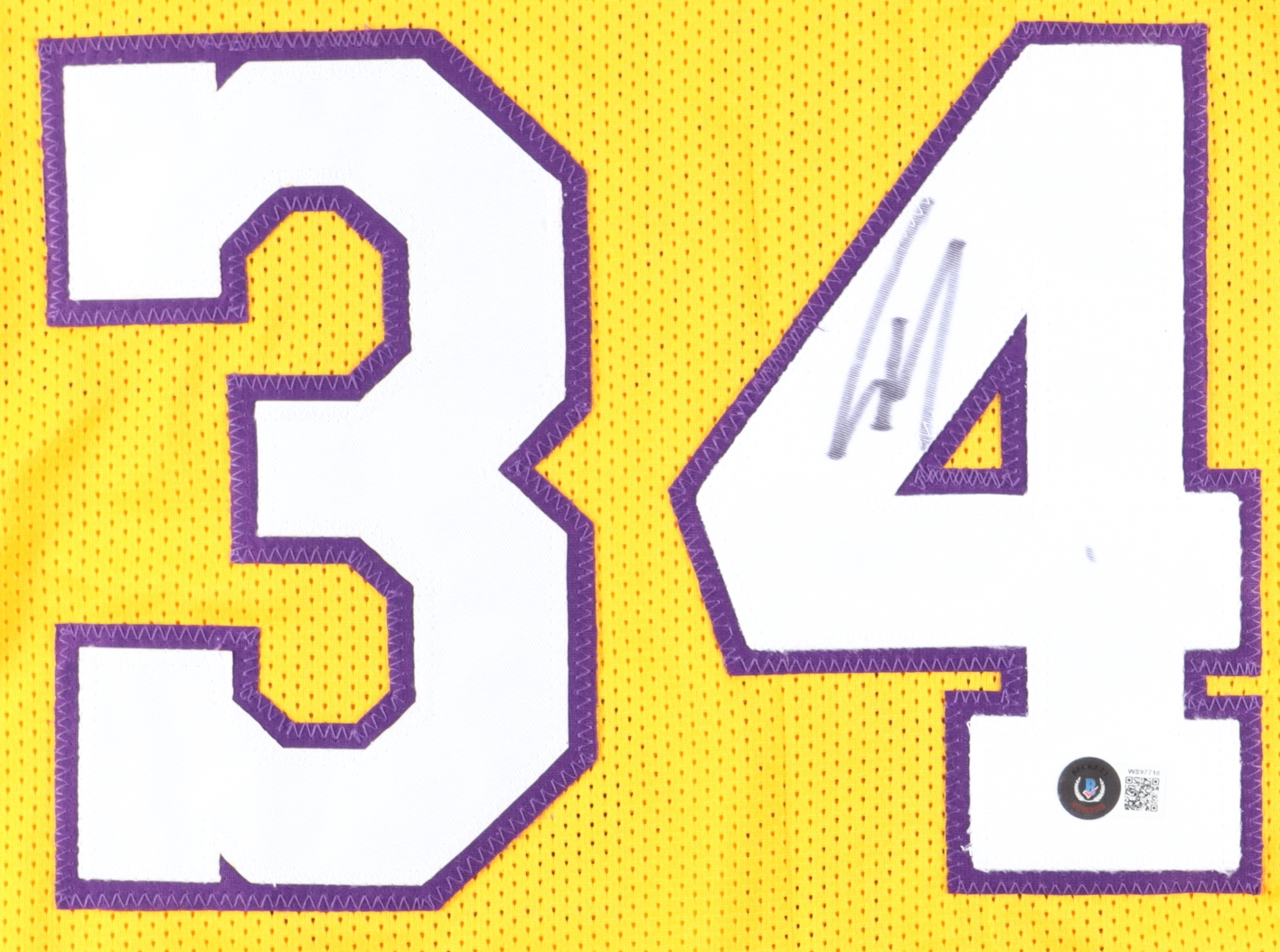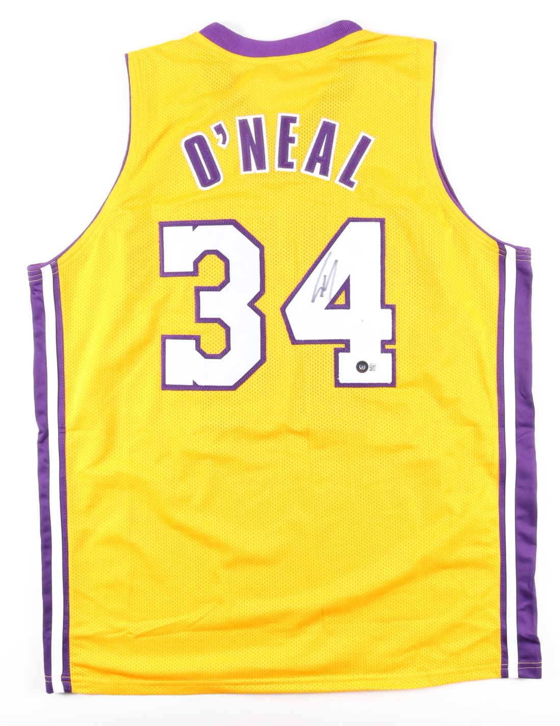 Custom on-court style jersey. Everything is sewn on, size XL. Hand-signed by Shaquille O'Neal (HOF). Please note, there is a stray pen mark on the reverse number 4.