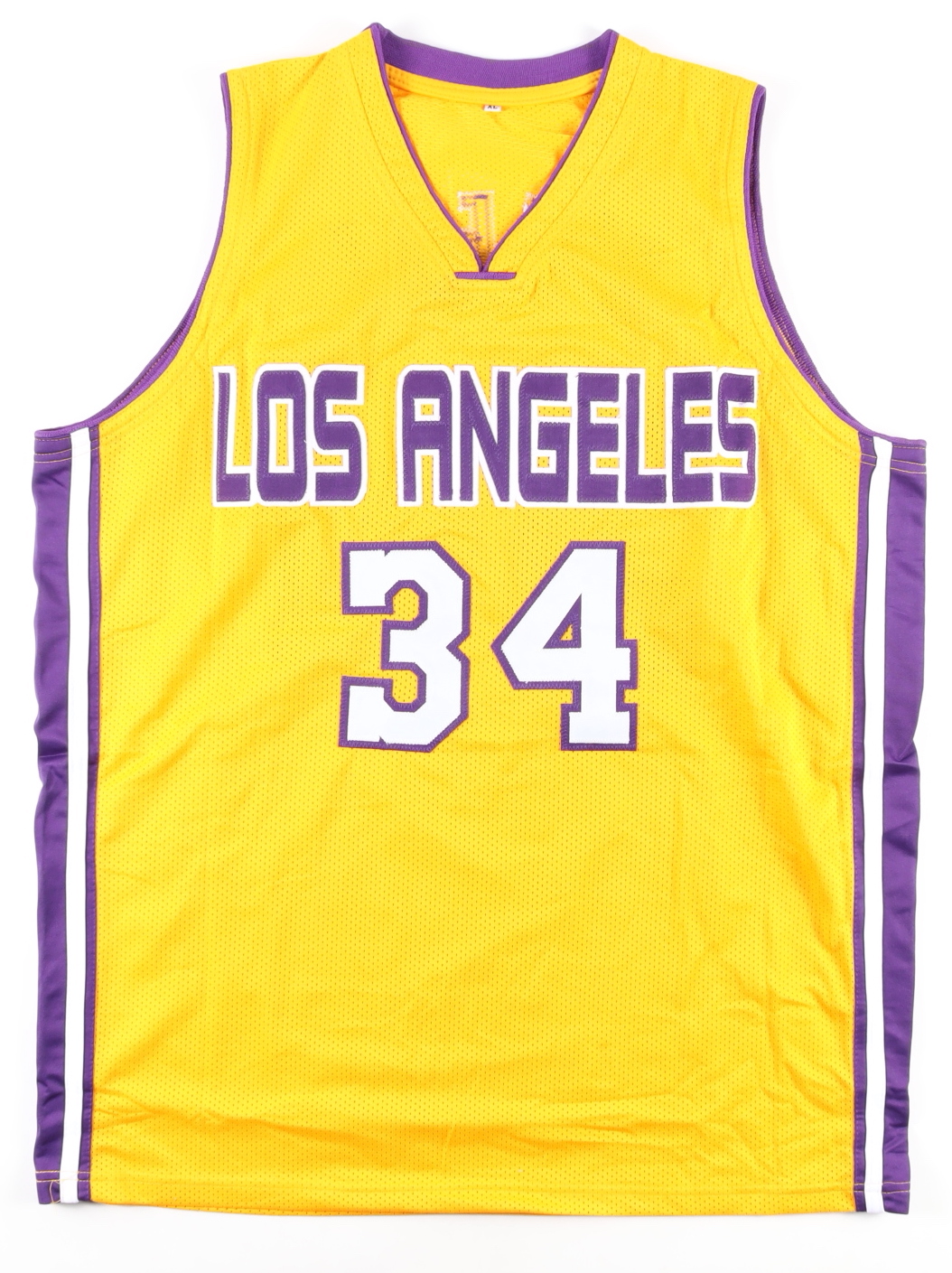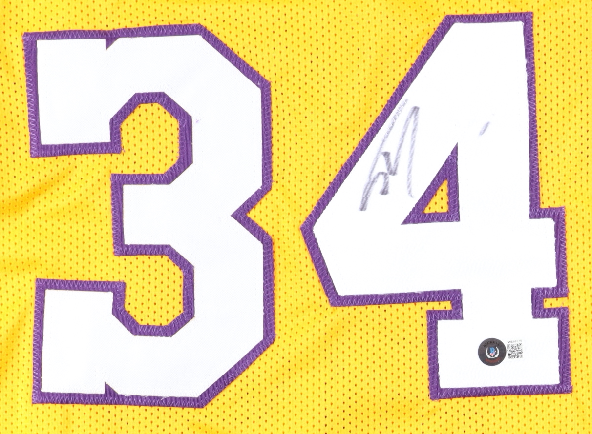 Custom on-court style jersey. Everything is sewn on, size XL. Hand-signed by Shaquille O'Neal (HOF). Please note, there is a stray pen mark on the reverse number 4.