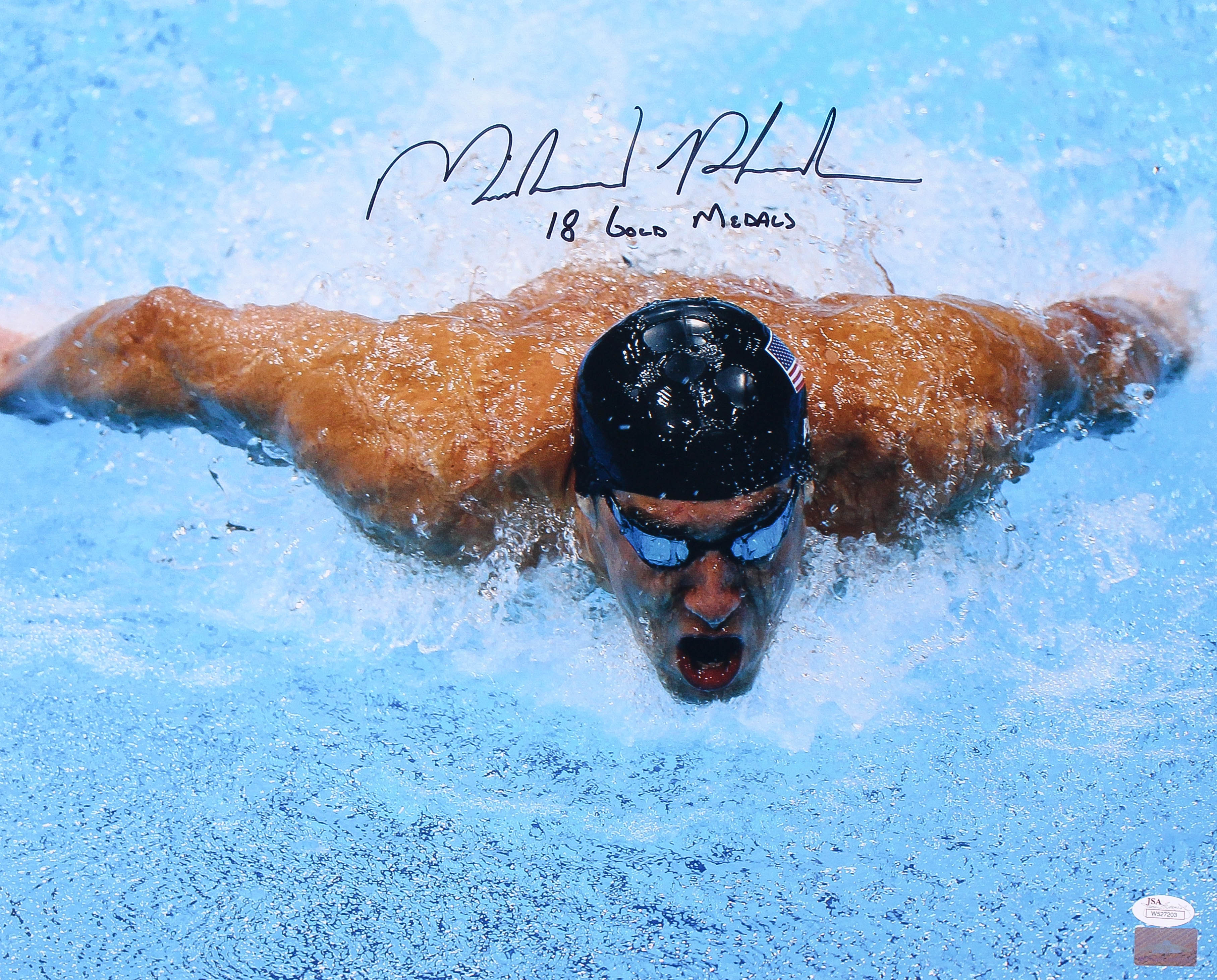 Michael Phelps Signed 16x20 Photo Inscribed "18 Gold Medals" (JSA COA & Michael Phelps Hologram)