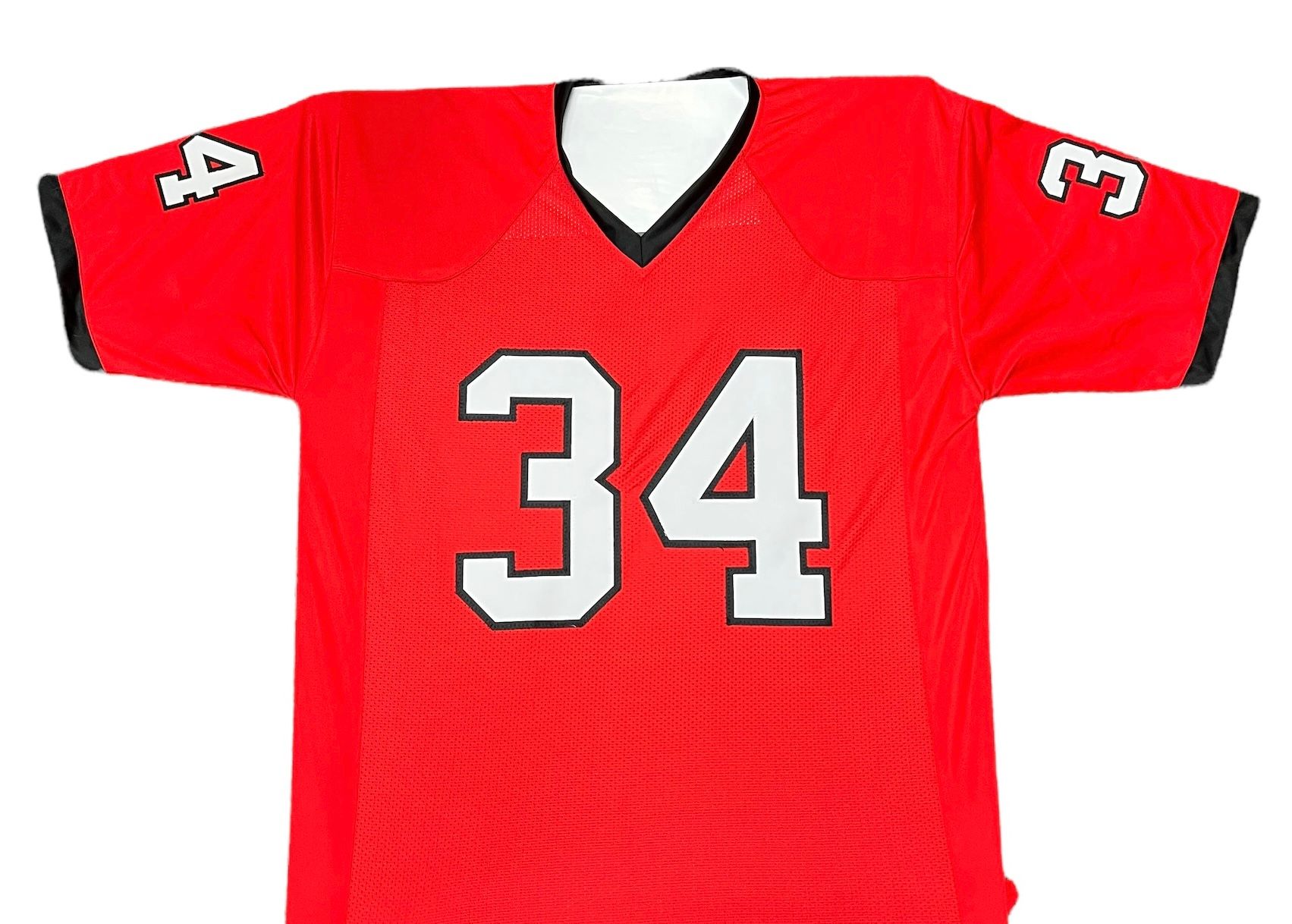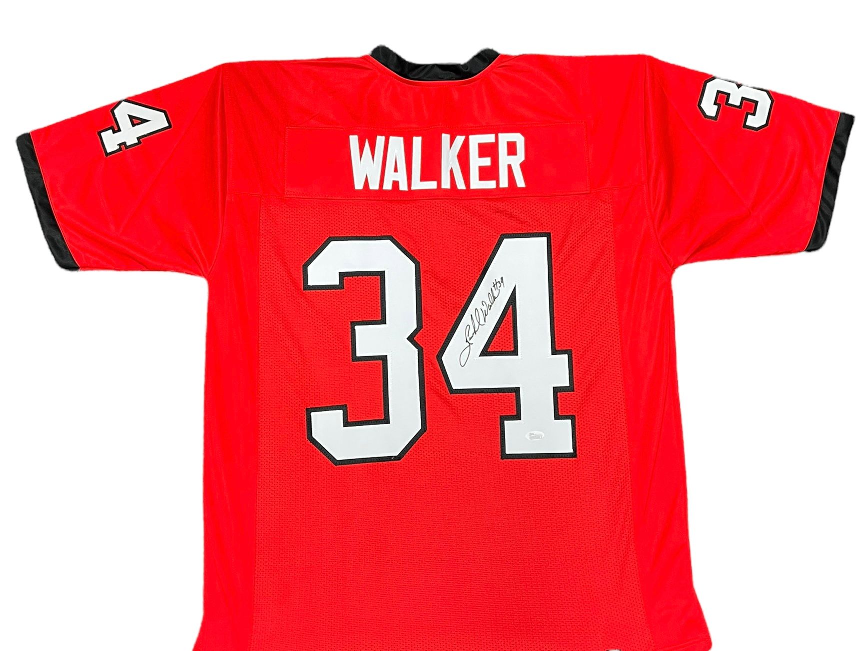 Custom on-field style jersey. Everything is sewn on, size XL. Hand-signed by Herschel Walker.