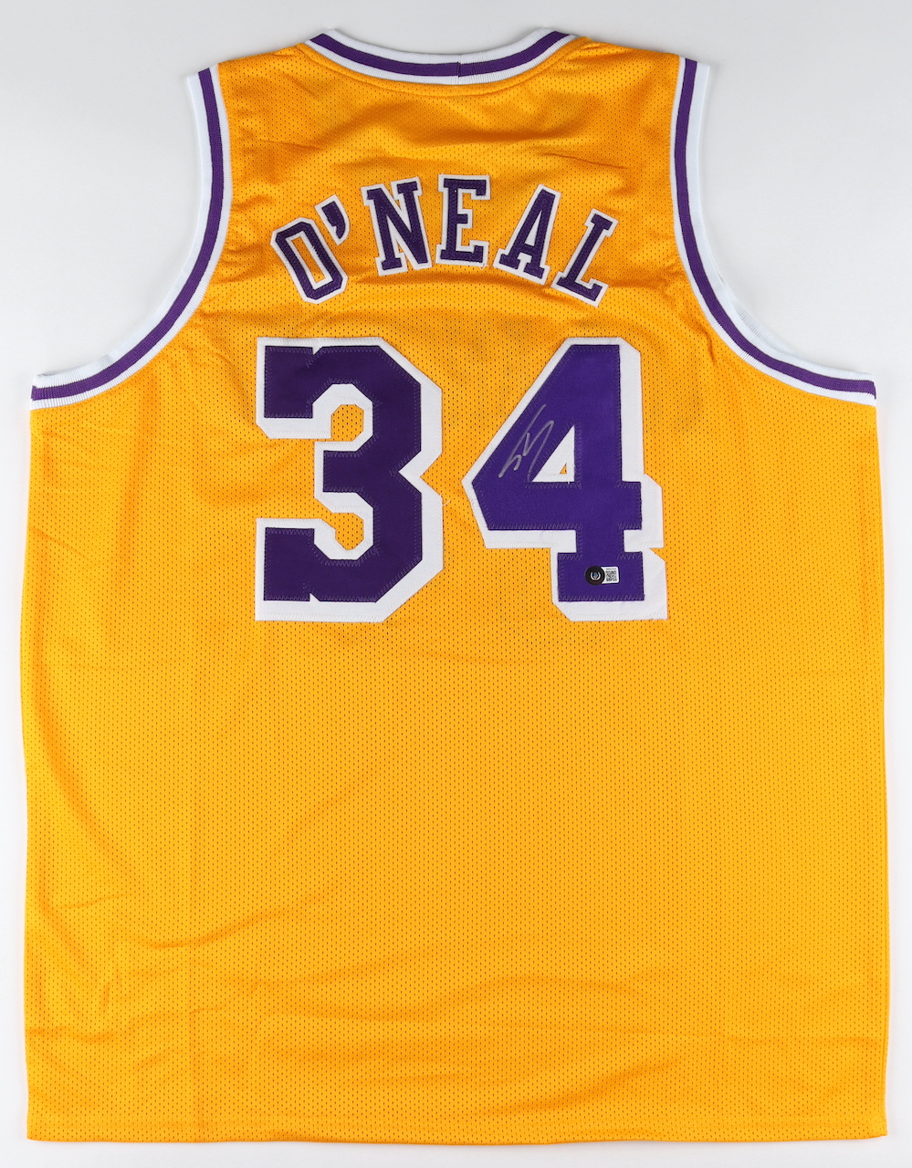 Custom on-court style jersey. Everything is sewn on, size XL. Hand-signed by Shaquille O'Neal (HOF).