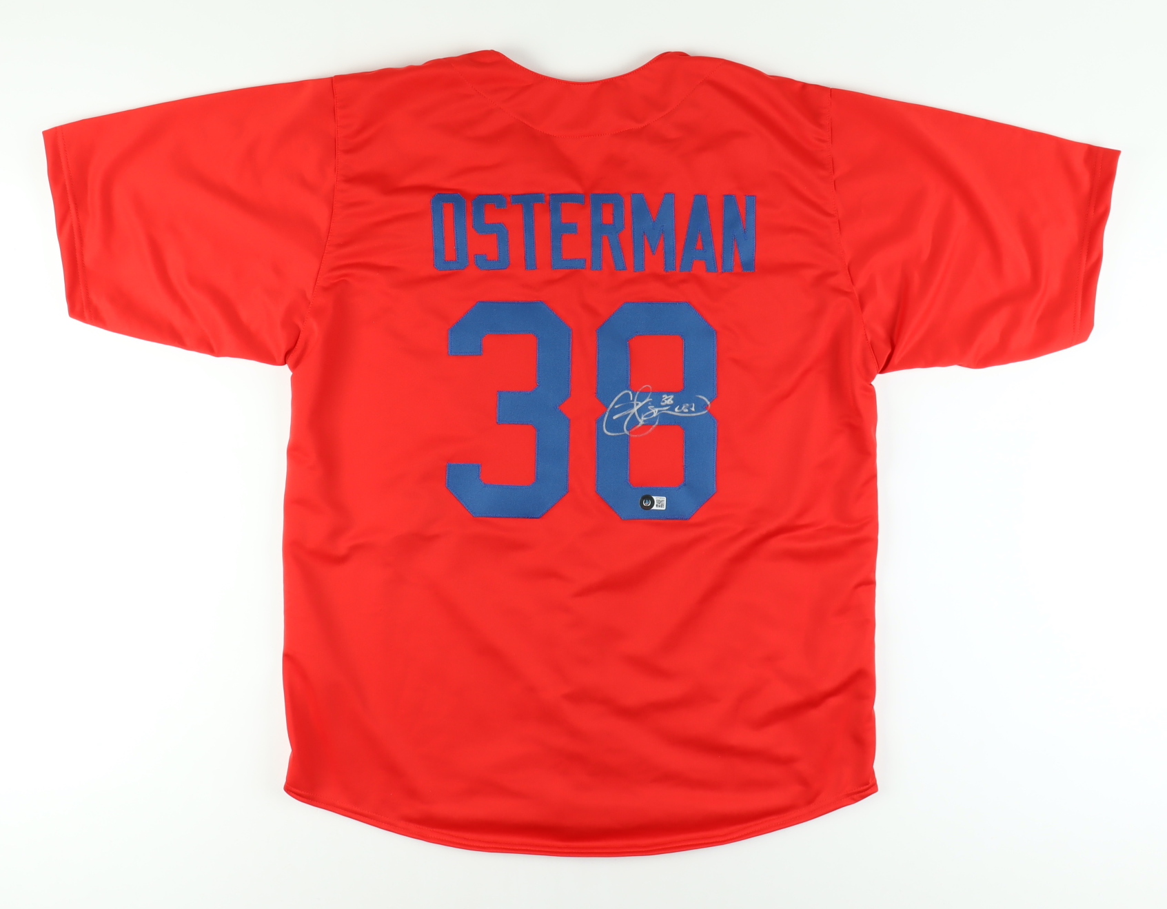 Custom on-field style jersey. Everything sewn on, size XL. Has been hand-signed and inscribed by Cat Osterman.