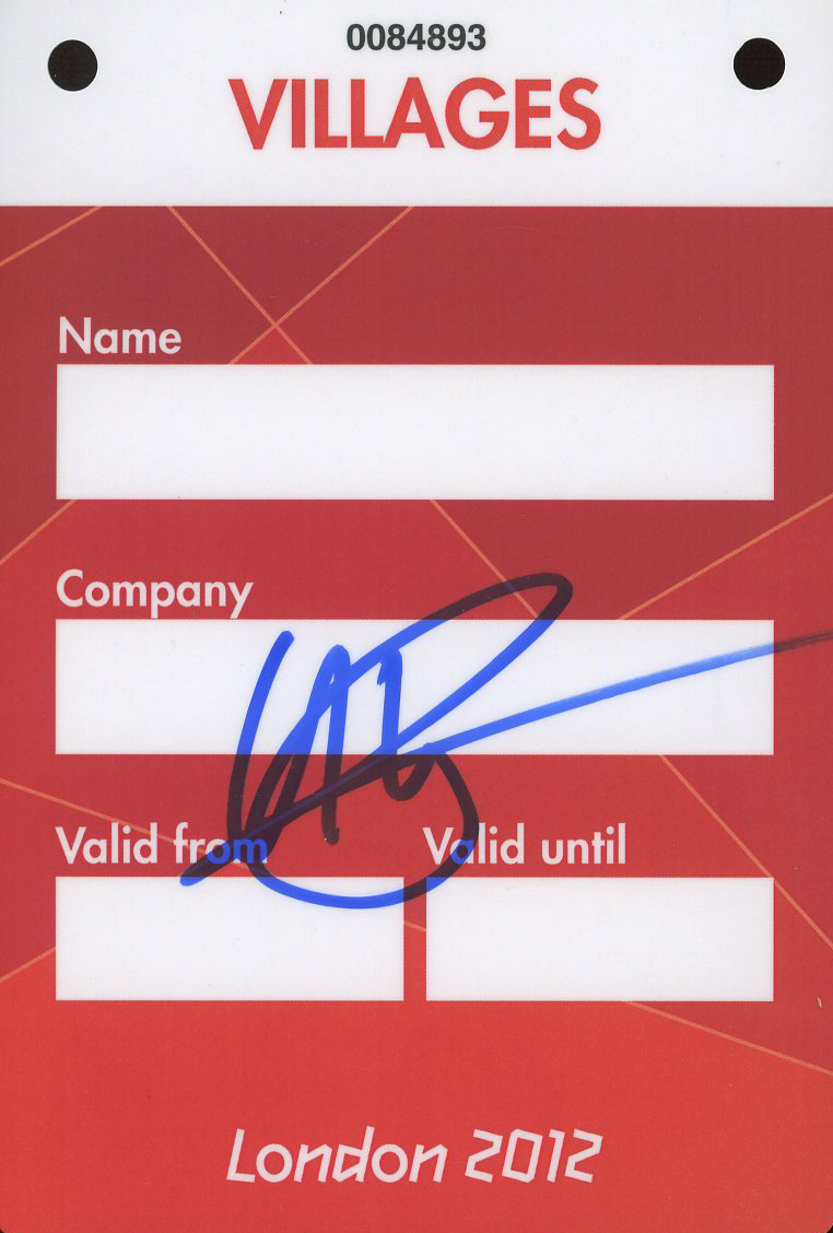 Authentic 2012 London Olympic Village Pass. Hand-signed by Usain Bolt.