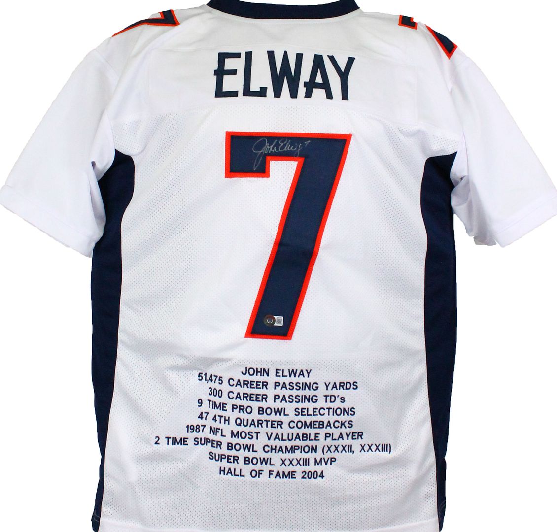 John Elway Signed Career Highlight Stat Jersey (Beckett)