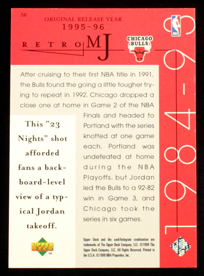 Michael Jordan 1998 Upper Deck Michael Jordan Career Collection #50 / MJ Retro 95-96 23 Nights