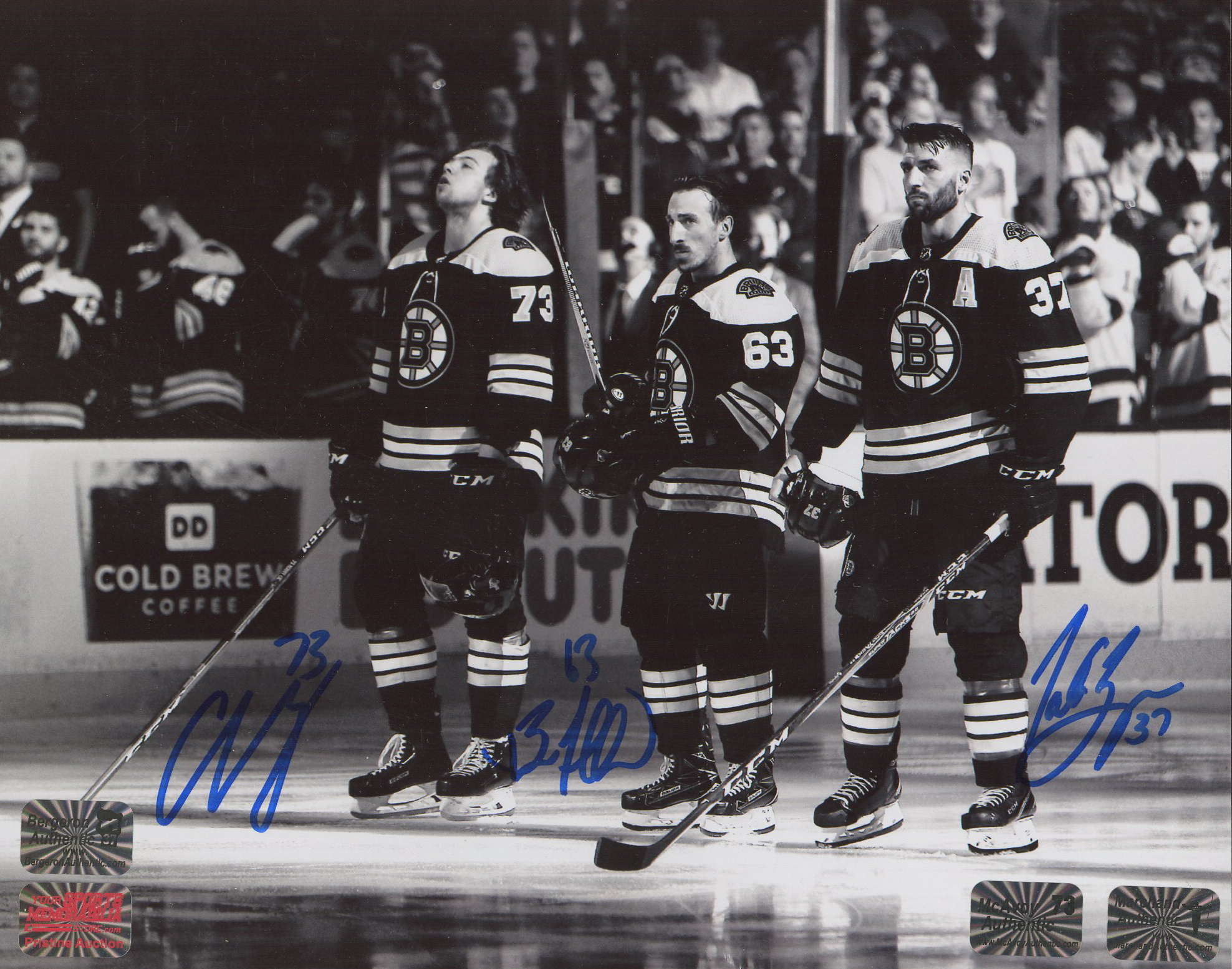 Brad Marchand, Patrice Bergeron & Charlie McAvoy Signed Bruins 8x10 Photo (Marchand, Bergeron & McAvoy)
