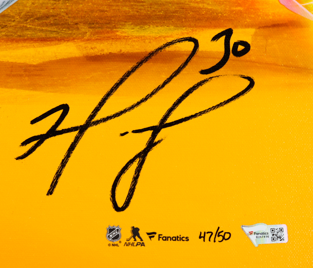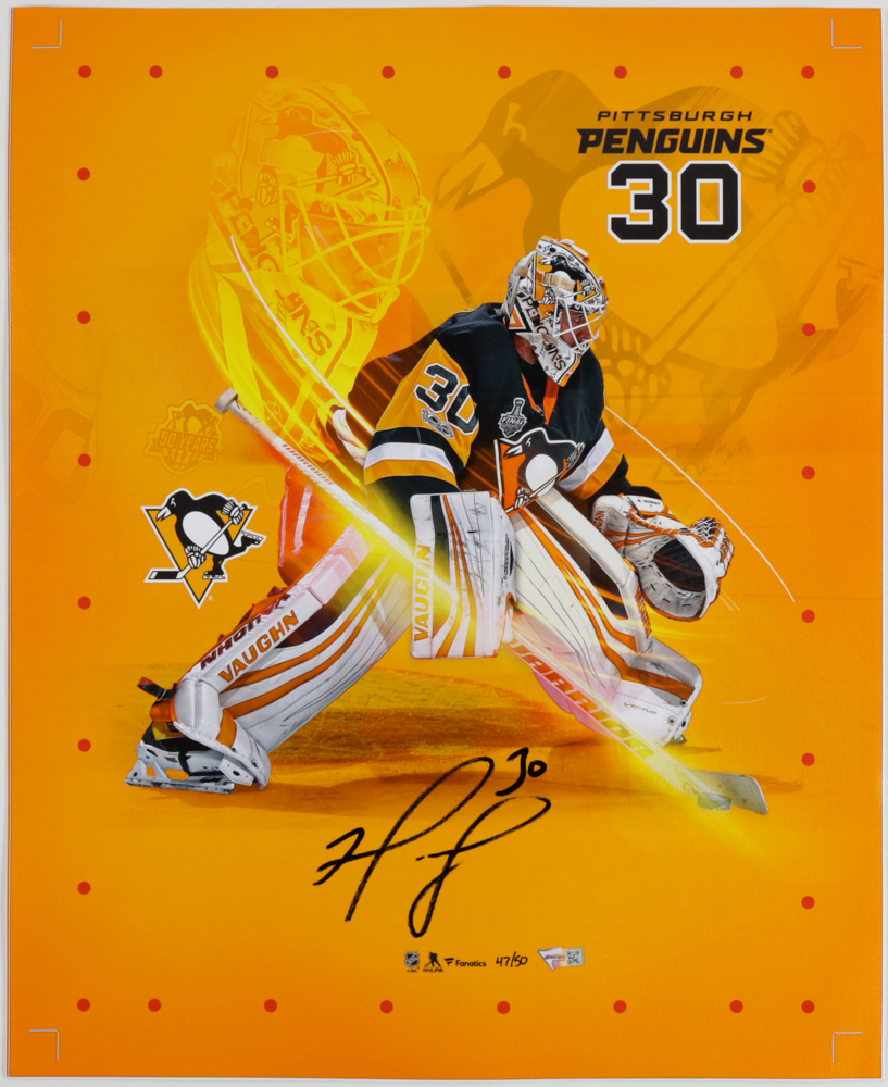 Canvas measures 17" x 20.5" in size and has been hand-signed by Matt Murray (Pittsburgh Penguins). Hand-numbered limited edition #/50. The winning bidder will receive a random number from the same edition.