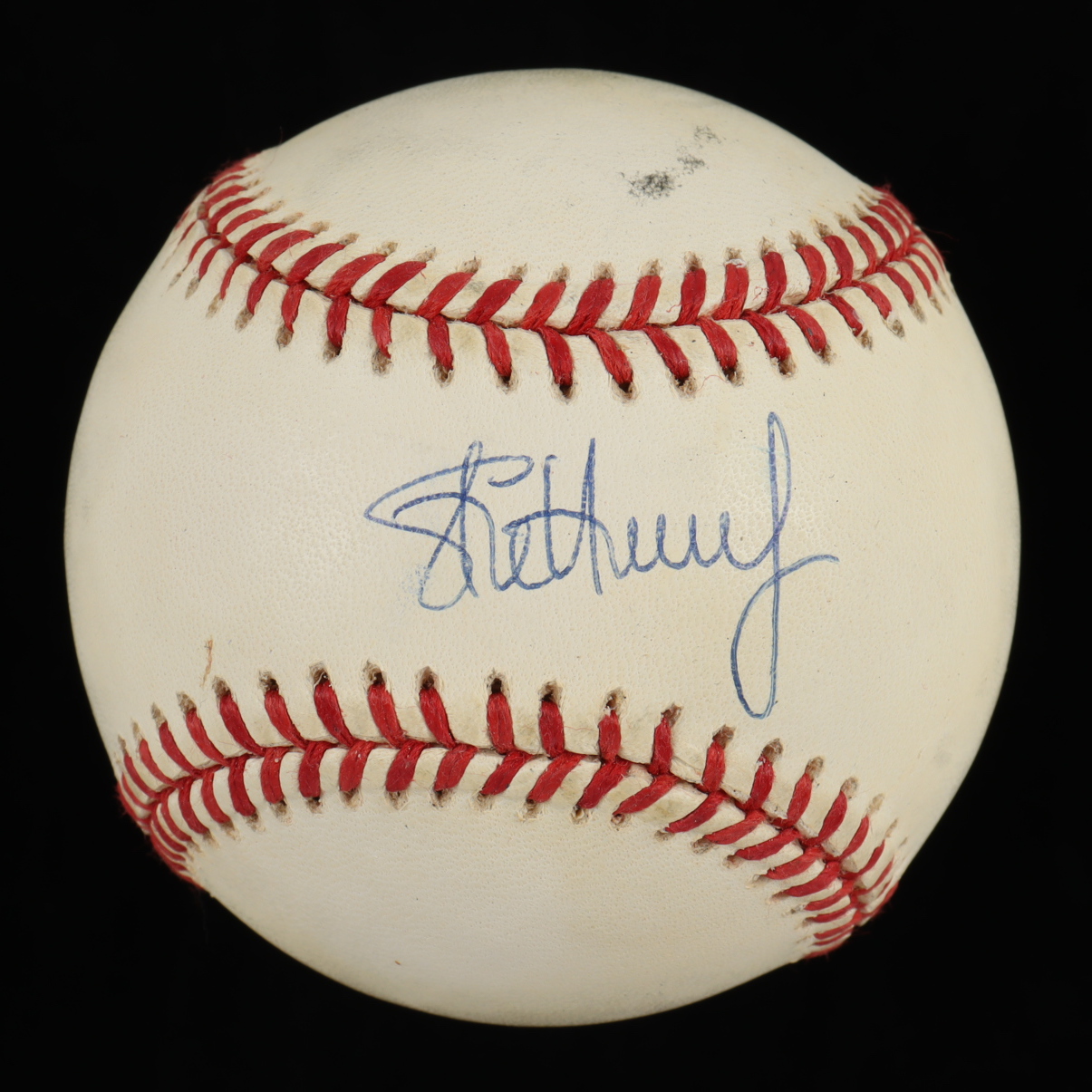 Rawlings Official National League Baseball. Hand-signed by Steve Avery (Atlanta Braves). Please note, the baseball shows signs of natural toning.
