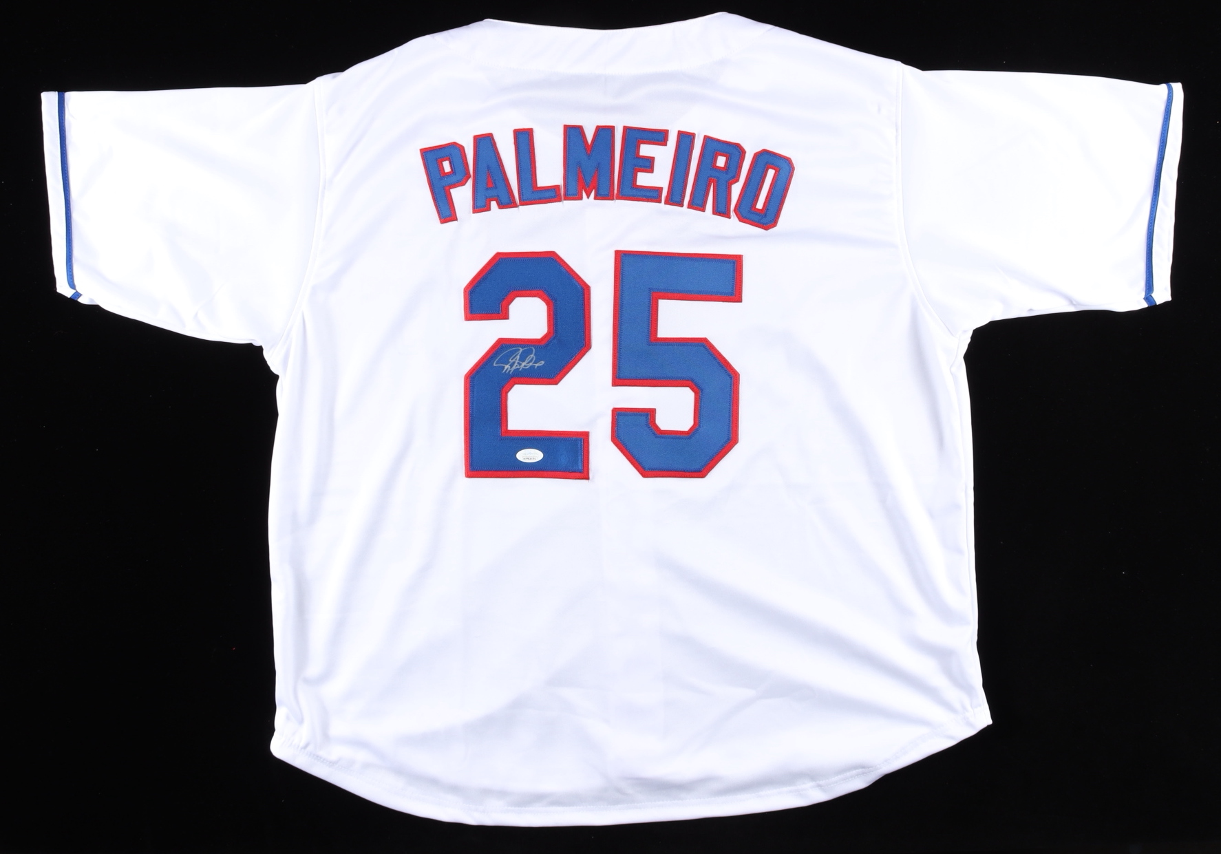 Custom on-field style jersey. Everything is sewn on, size XL. Hand-signed by Rafael Palmeiro.