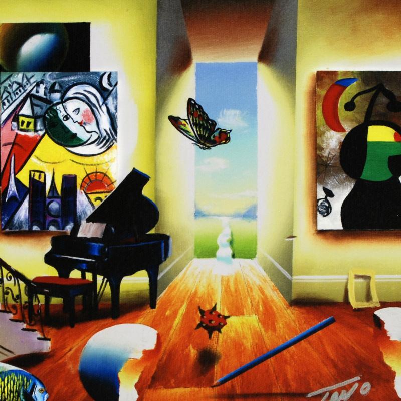 "Chagall's Recital" is a limited edition giclee on canvas that measures 9" x 12" in size. Hand-signed by Ferjo (Artist).