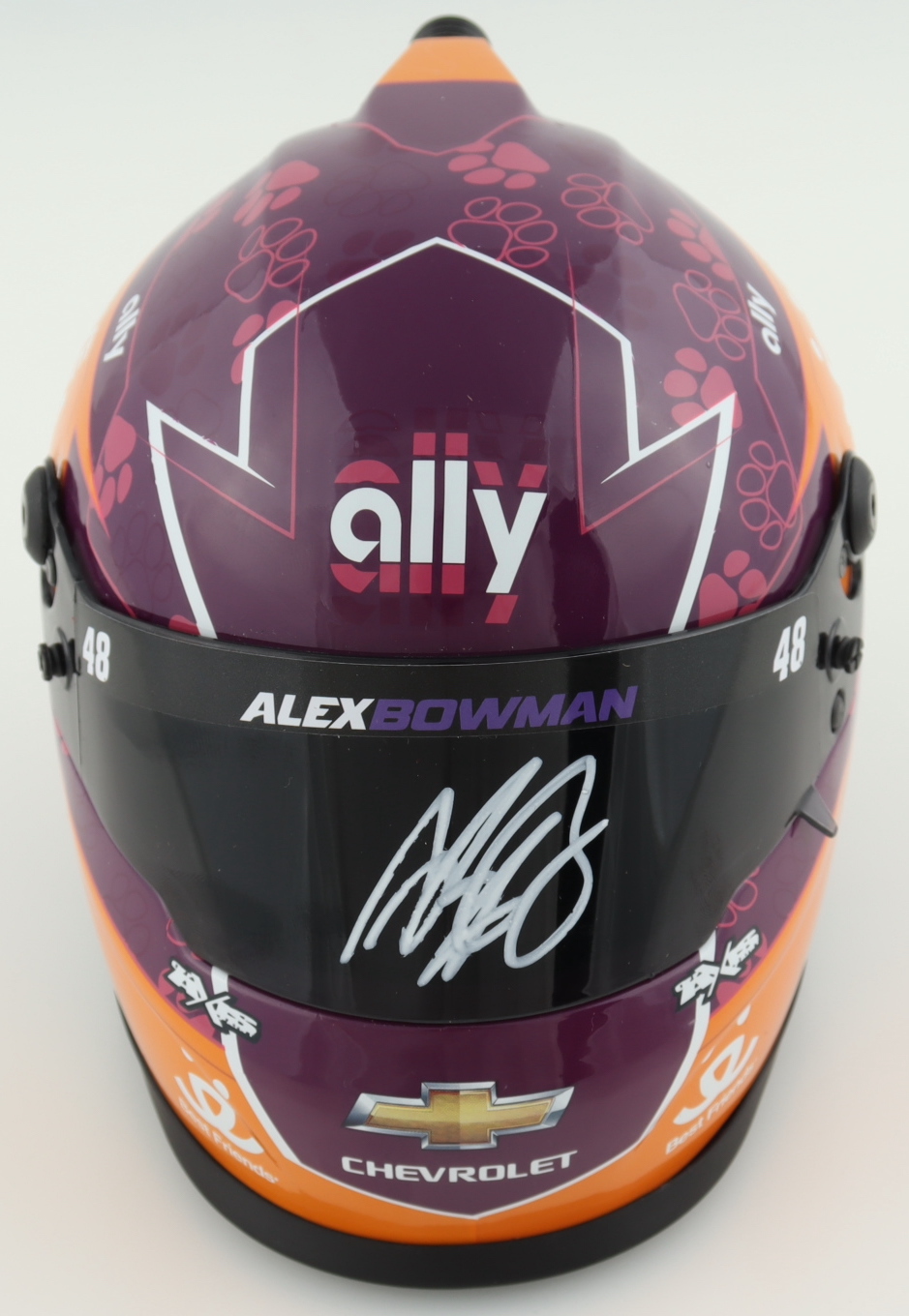 NASCAR mini helmet is hand-signed on the visor by Alex Bowman.