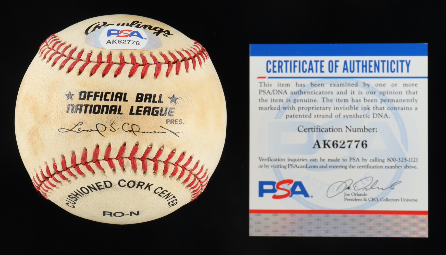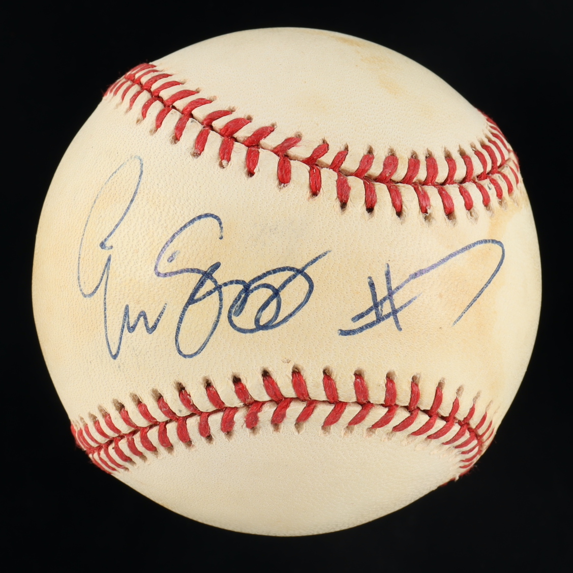 Rawlings Official National League baseball. Hand-signed by Eric Gregg (D. 2006, National League Umpire). Please note, there is natural staining and toning throughout the baseball.