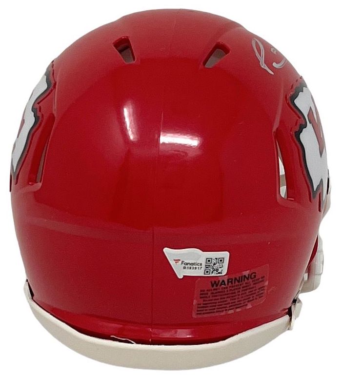 Riddell Kansas City Chiefs speed mini helmet. Hand-signed by Patrick Mahomes.